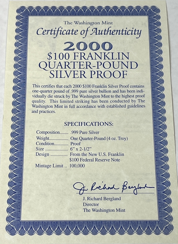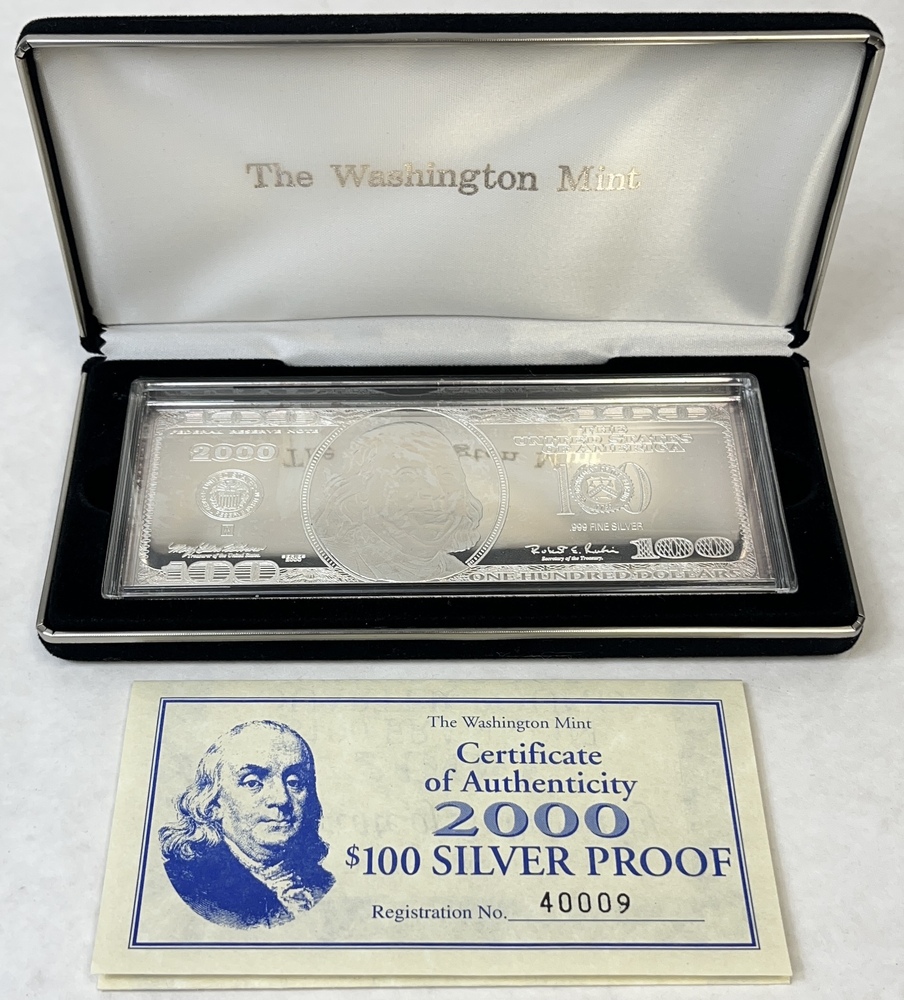 $100 Bill Silver Proof 4oz .999 Fine Silver