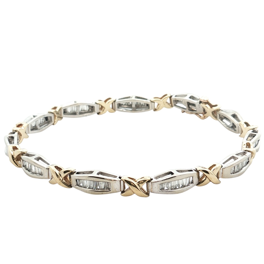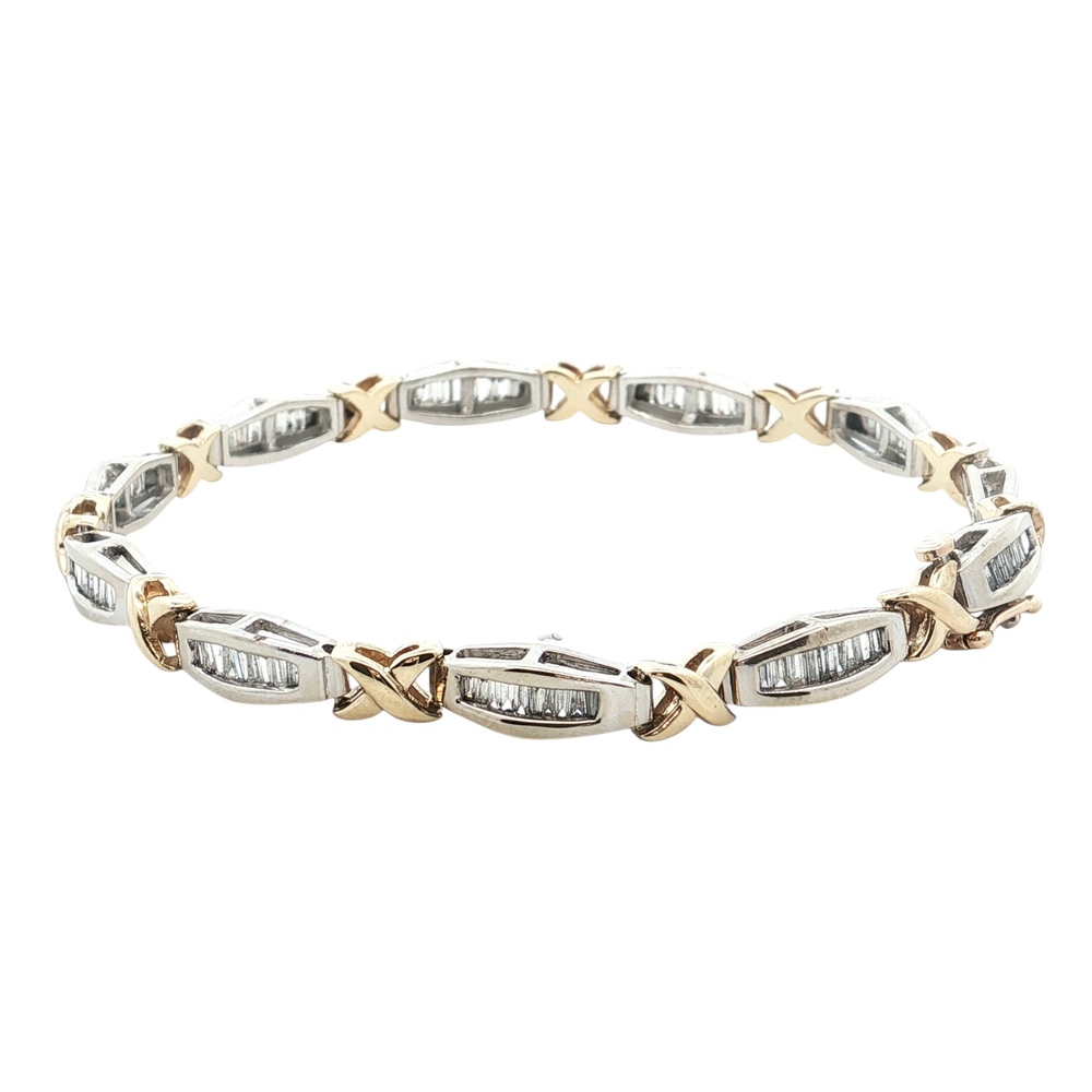 10K Two-Tone Gold 7-1/4 in. 1.0CTW Baguette Diamond Tennis Bracelet 10.8g
