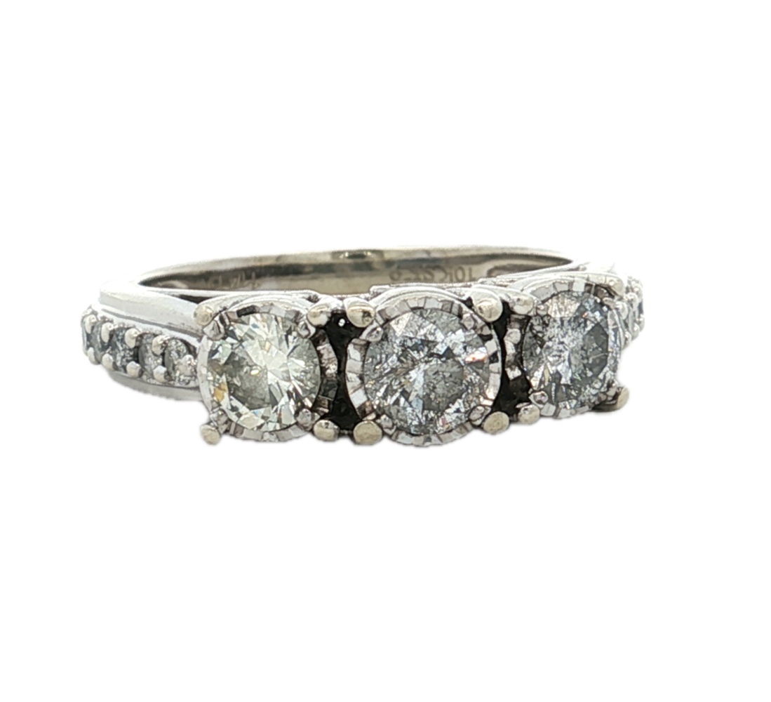 10K White Gold 1-1/4CTW 3-Diamond Anniversary Ring SZ;7, 3.8g