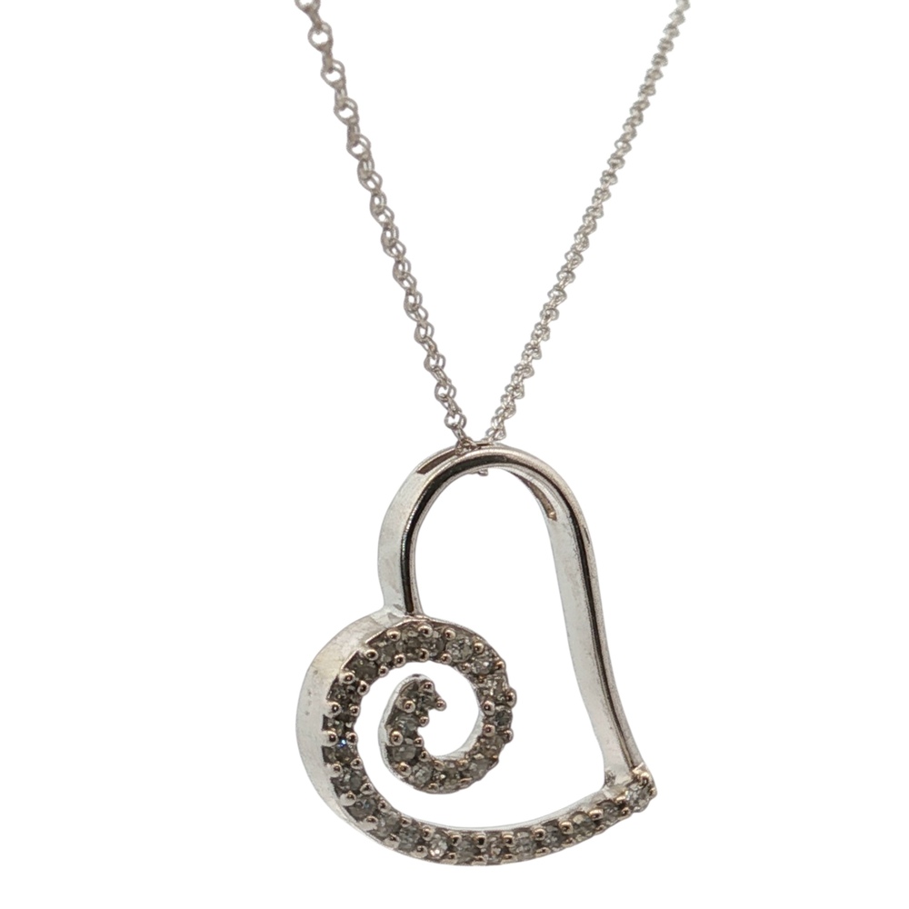 10K White Gold .15CTW Diamond Heart Necklace 19 in. 1.8g