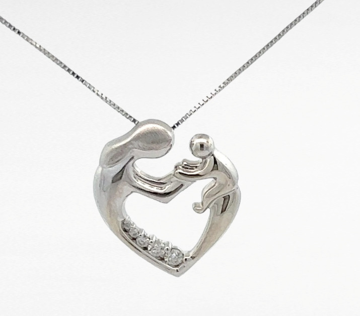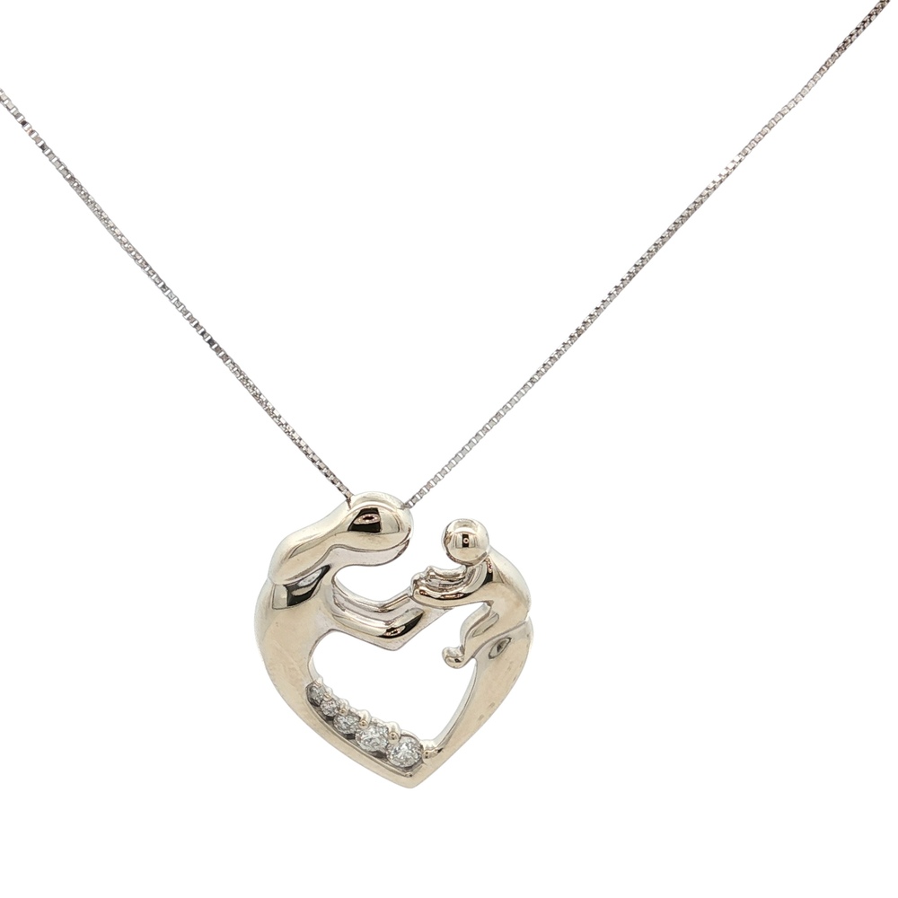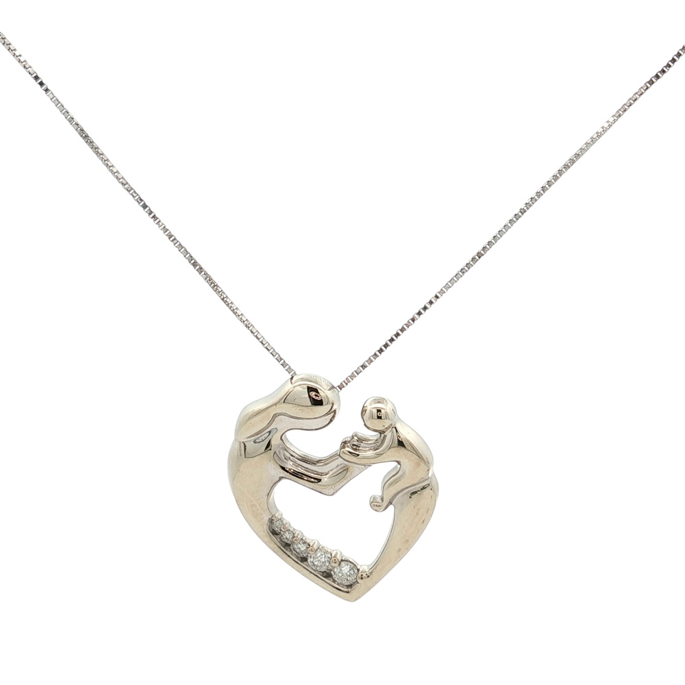 10K White Gold 18 in. 5-Diamond Mother & Child Necklace 2.7g