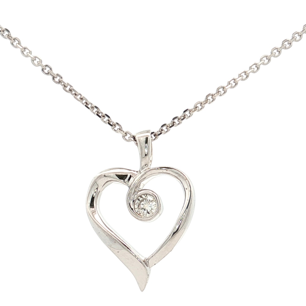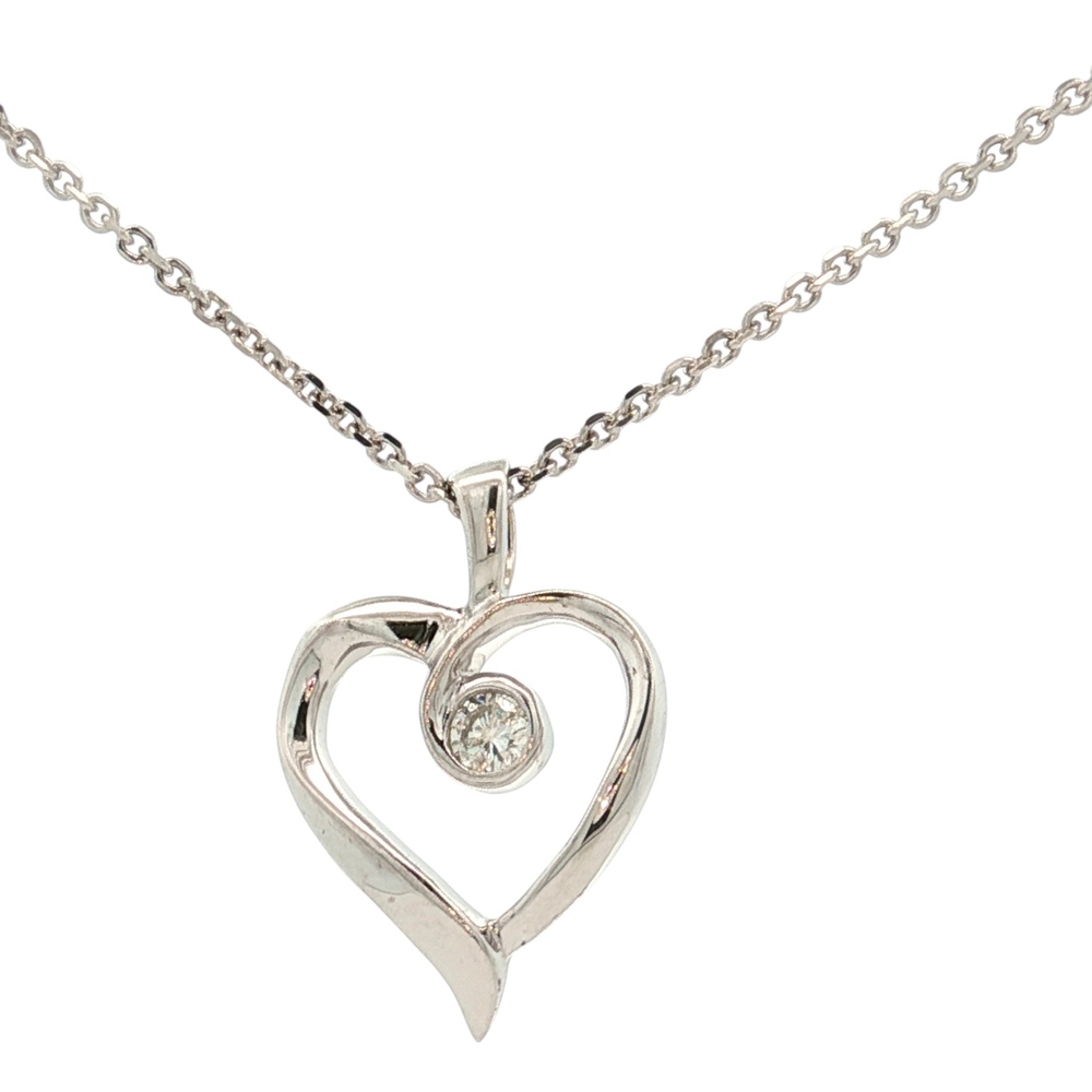 10K White Gold 18 in. Heart Diamond Necklace 2.8g