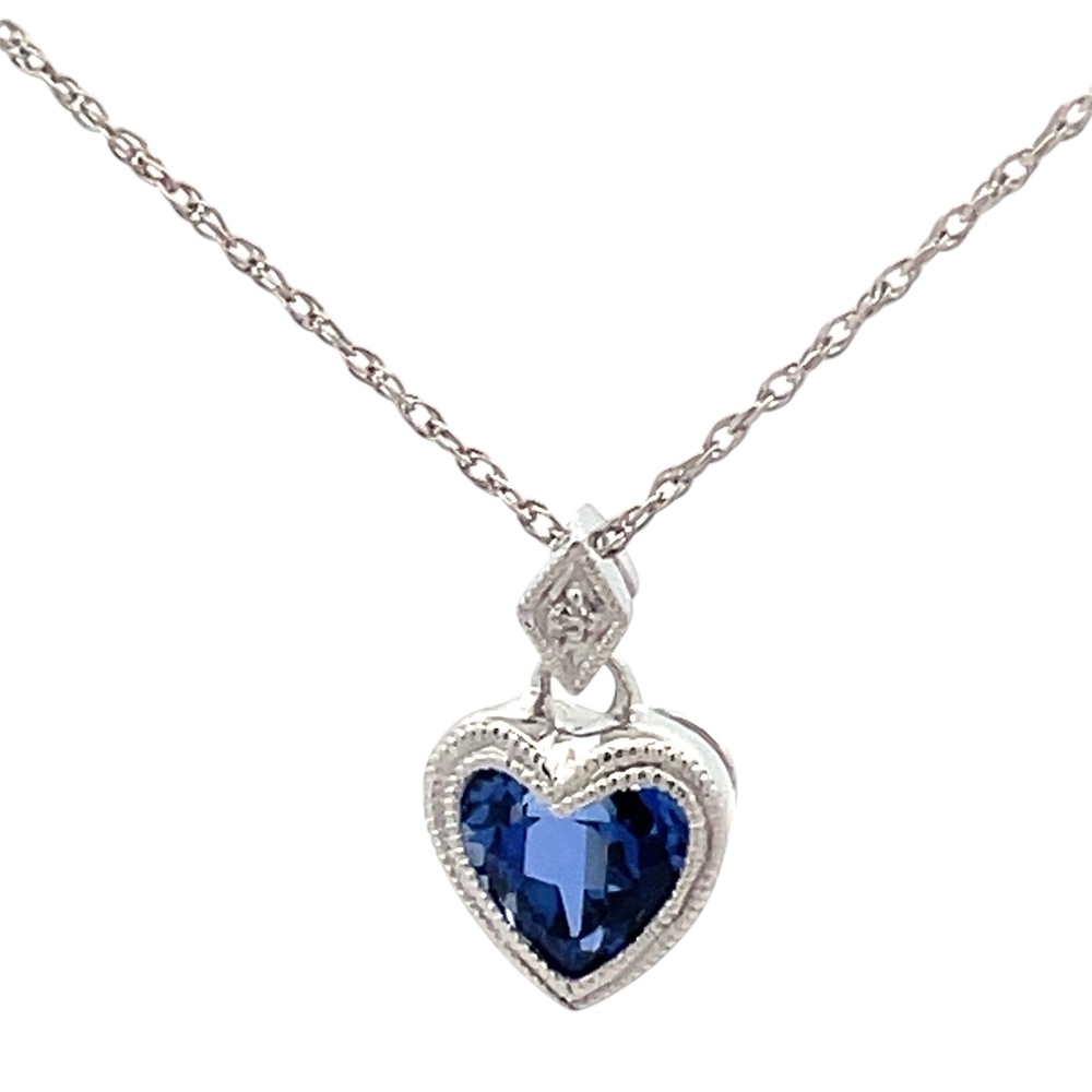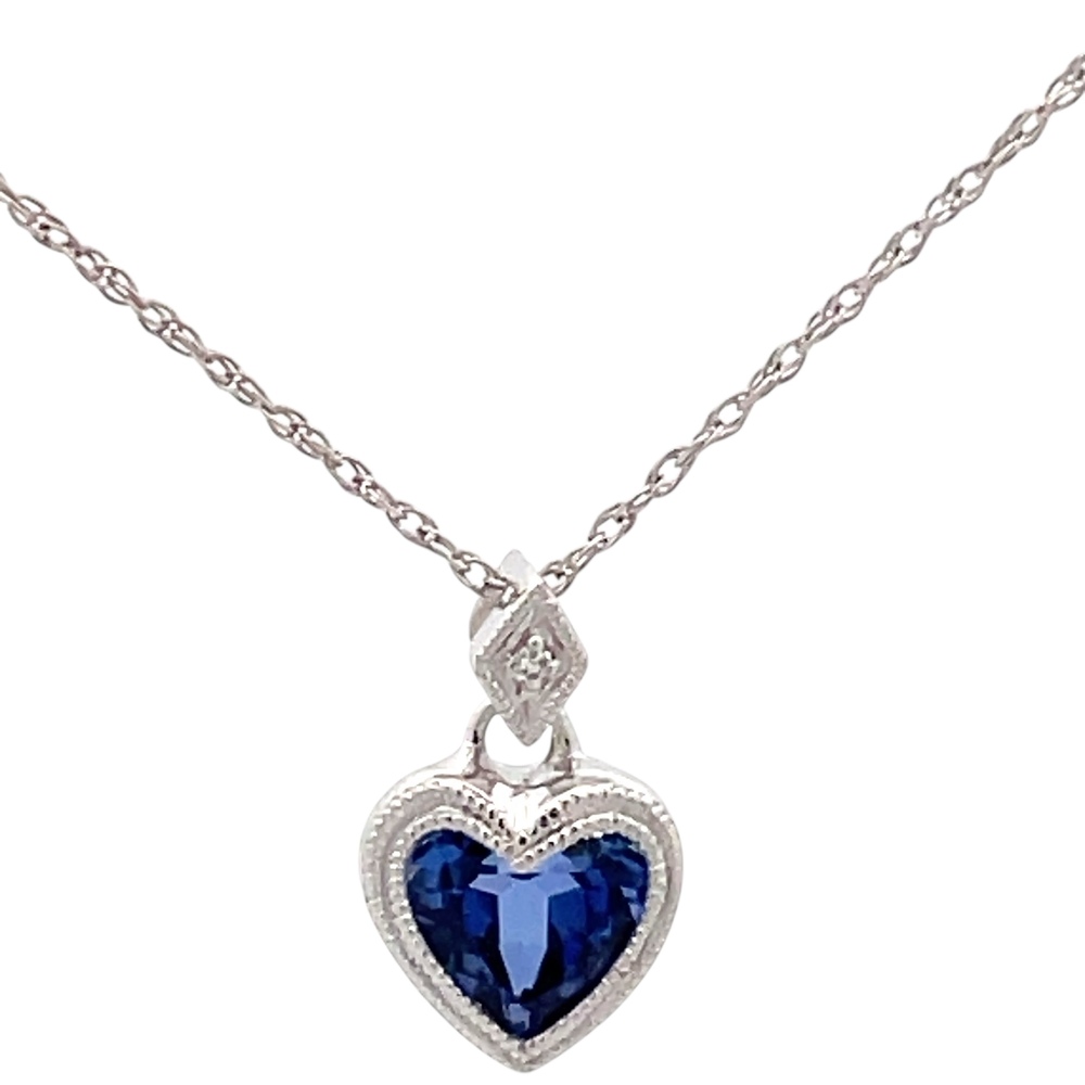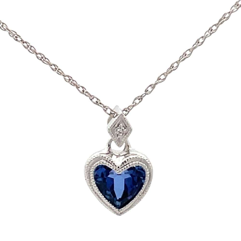 10K White Gold Blue Heart-Shape Gemstone Necklace 18 in.