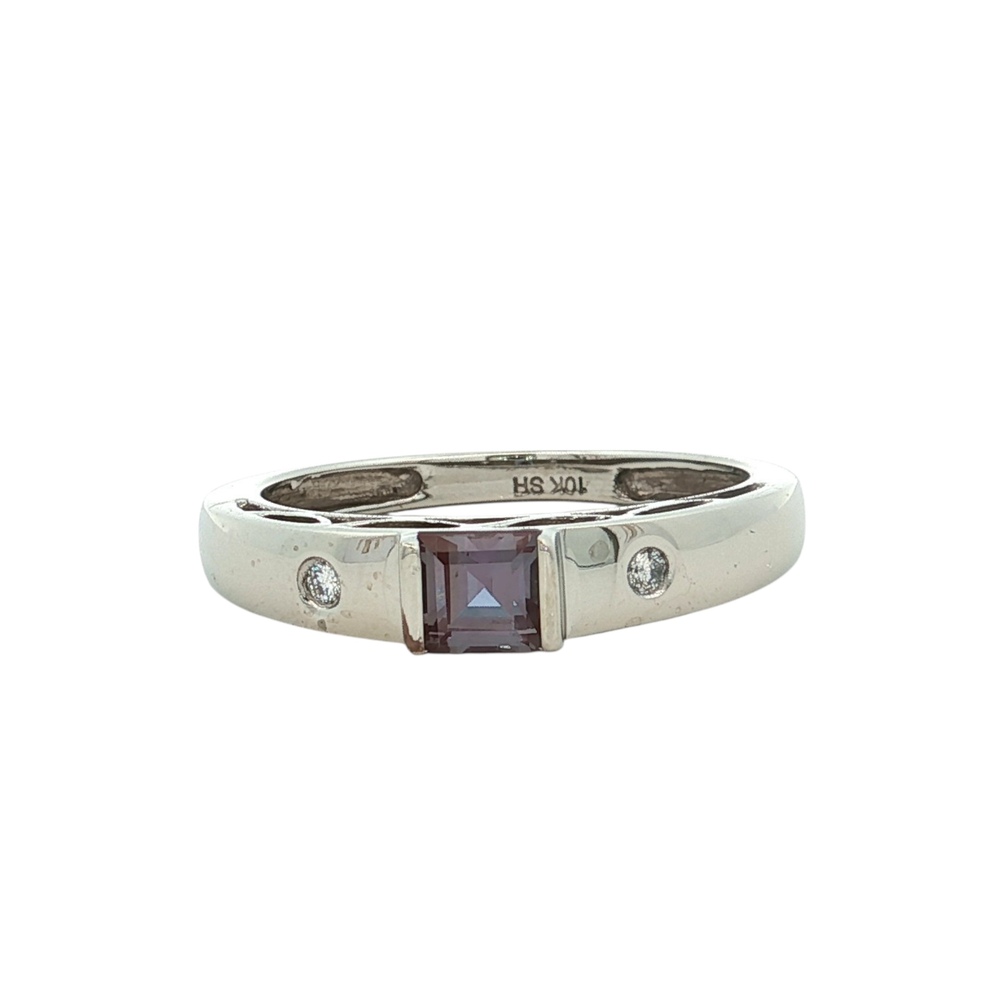 10K White Gold Diamond & Syn. Alexandrite Gemstone Ring SZ:7, 2.1g