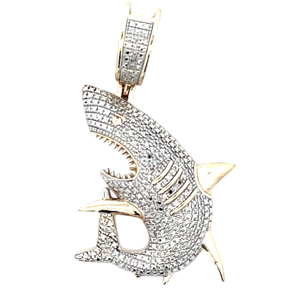 10K Yellow Gold 1/2 CTW Diamond Shark Pendant