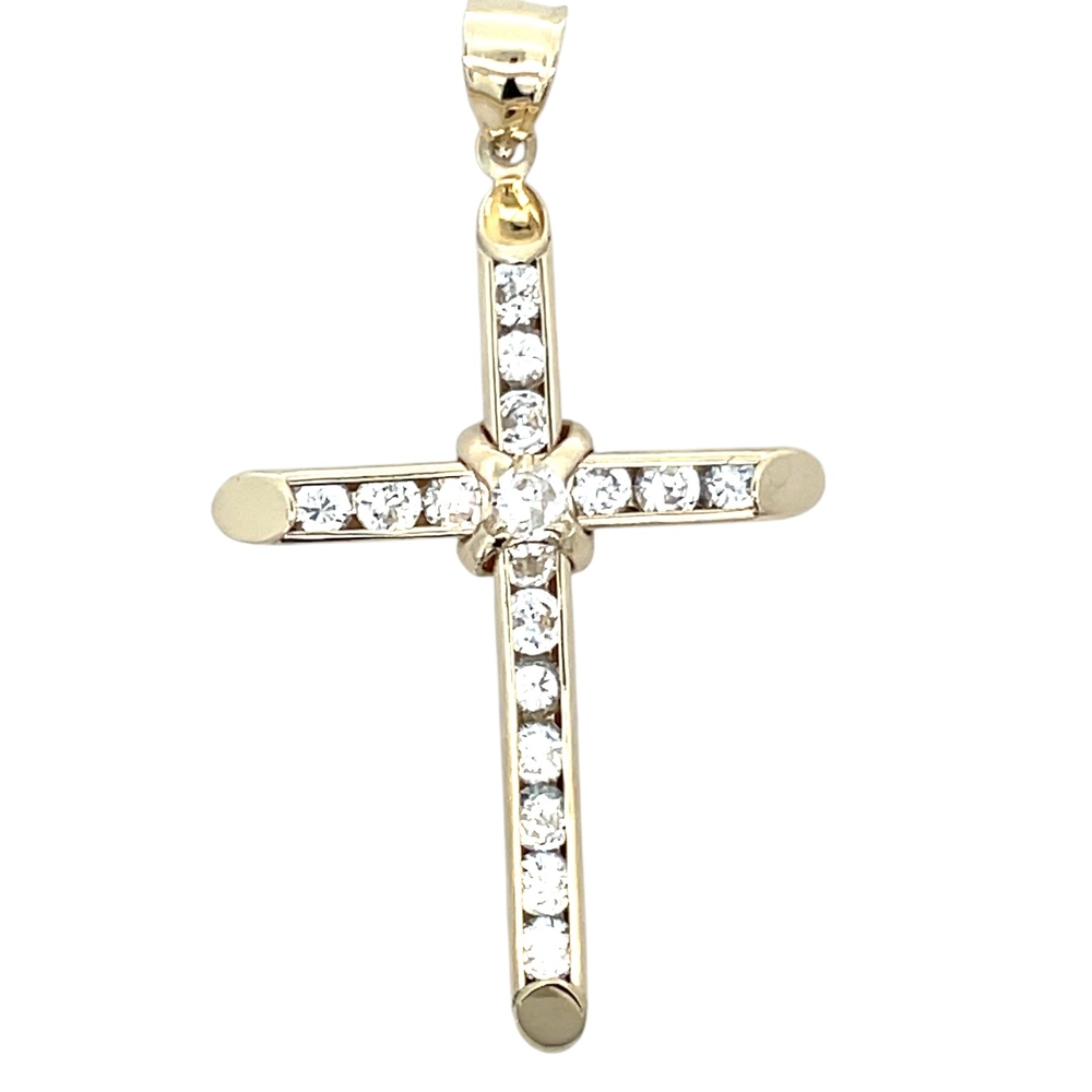10K Yellow Gold 2-1/4 in. Cubic Zirconia Cross Pendant 4.8g