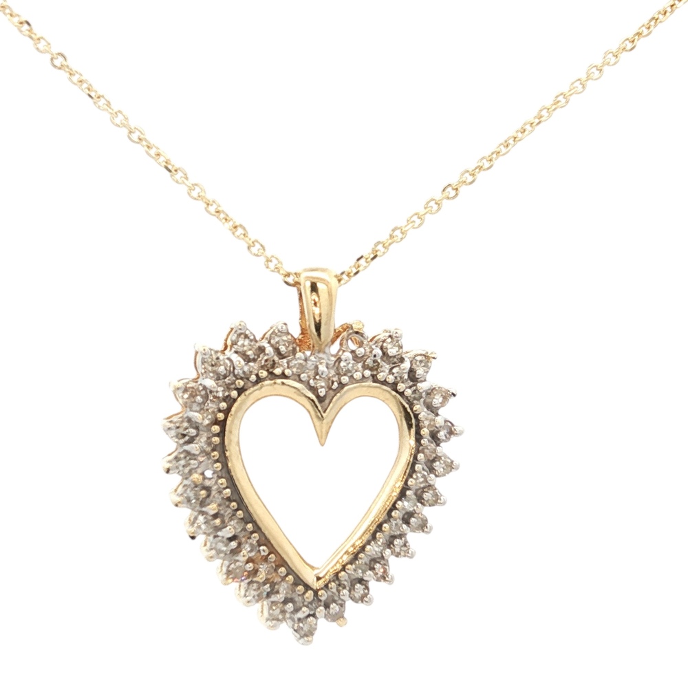 10K Yellow Gold .43CTW Diamond Heart Necklace 18 in. 5.2g