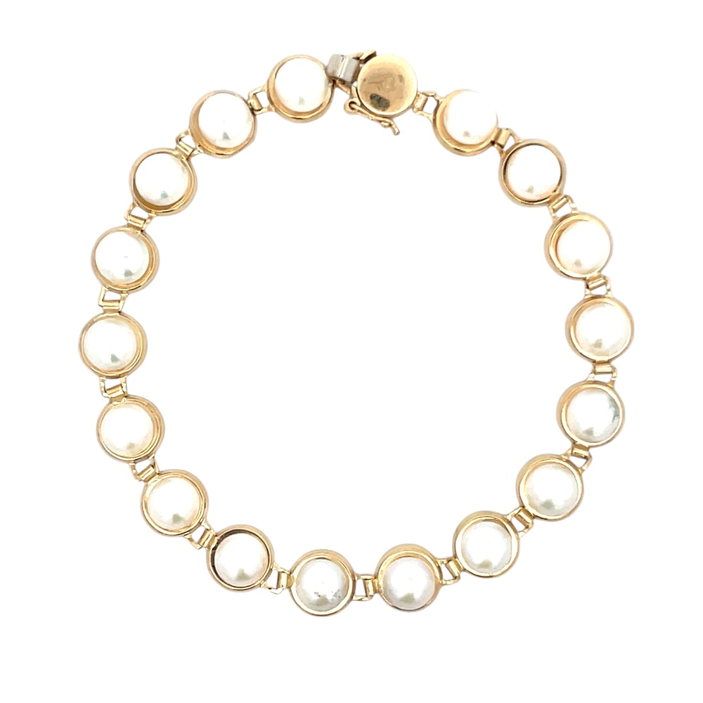 10K Yellow Gold 7 in. Synthetic Pearl Bracelet 8.7g
