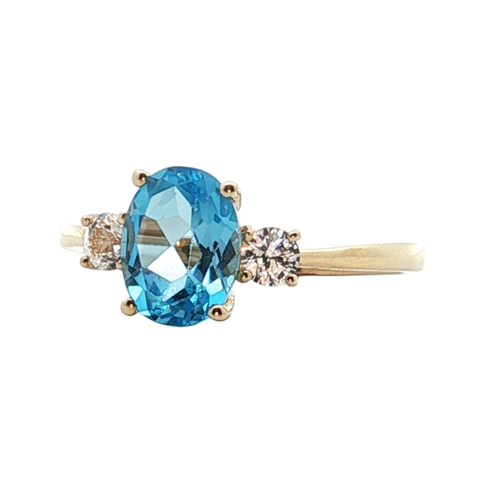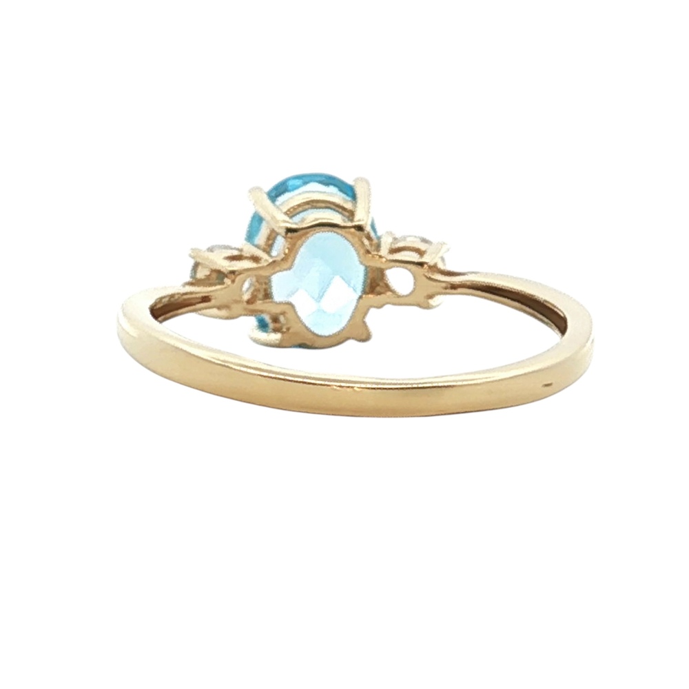 10K Yellow Gold Blue Topaz & CZ Gemstone Ring SZ: 6.5