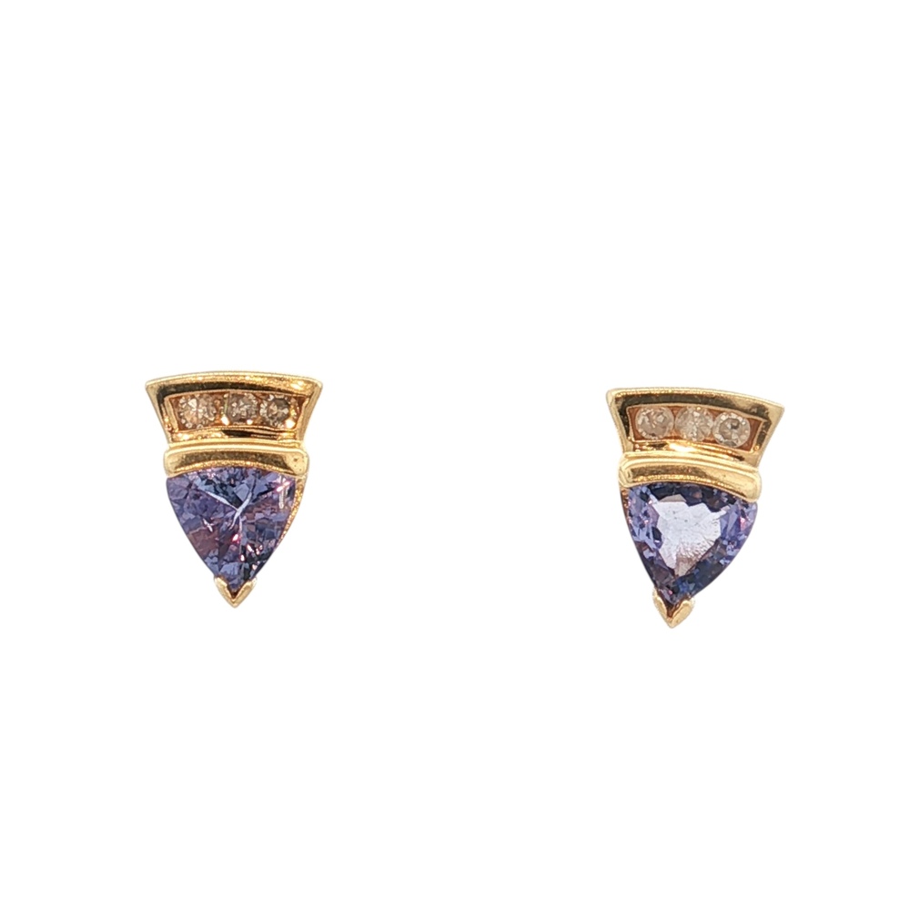 10K Yellow Gold Diamond & Tanzanite Gemstone Earrings 1.4g