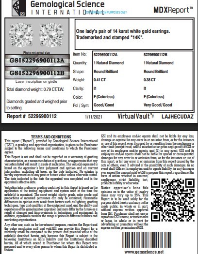 - Diamond Earrings 0.70gm GSI52296900112A & GSI52296900112B