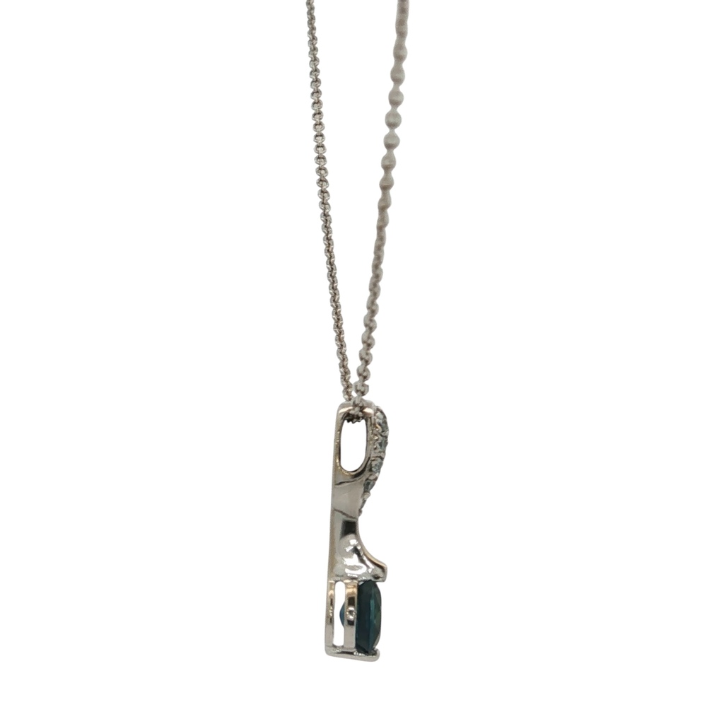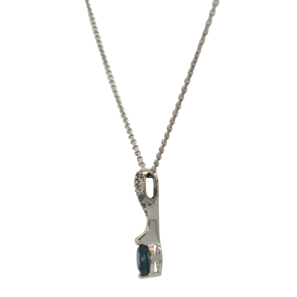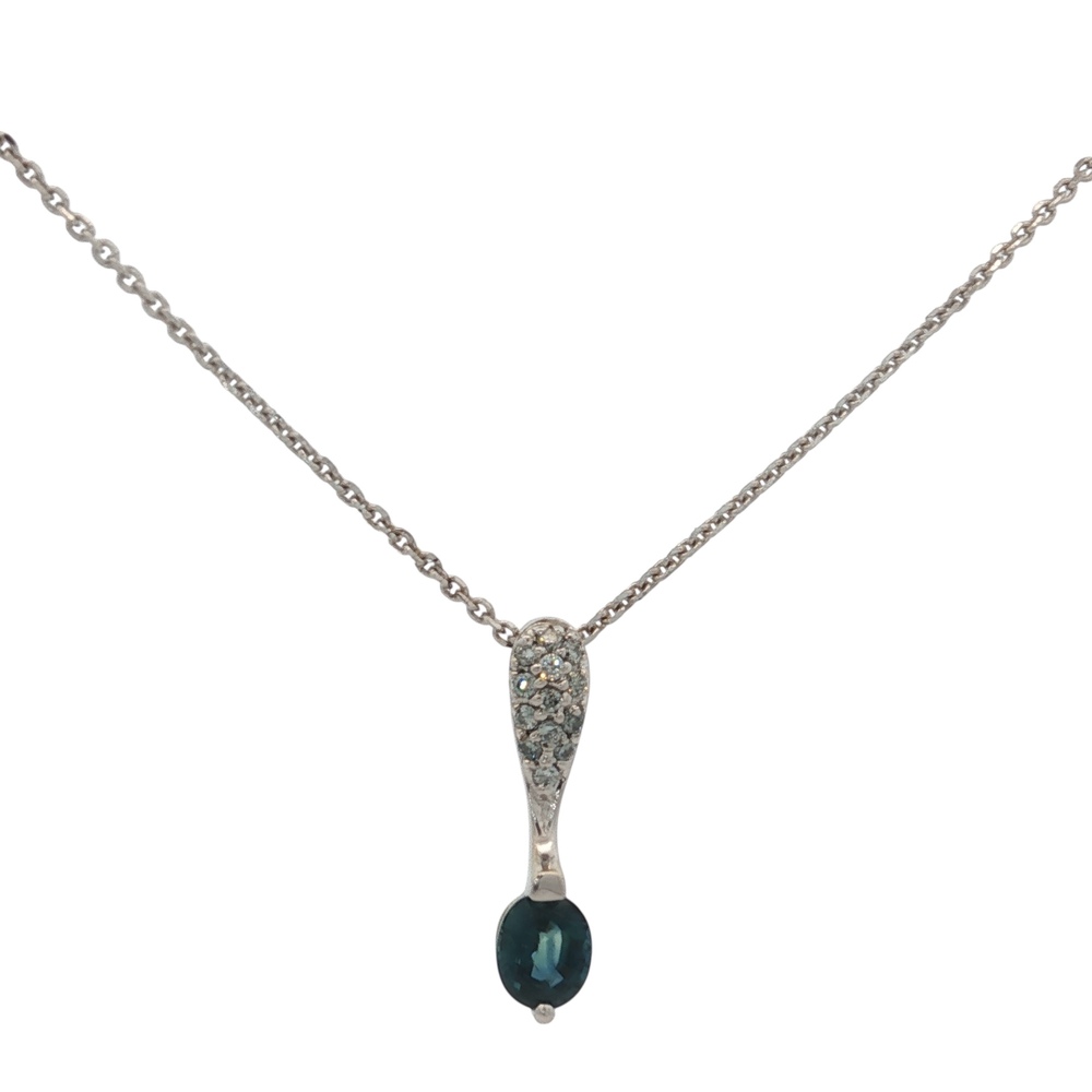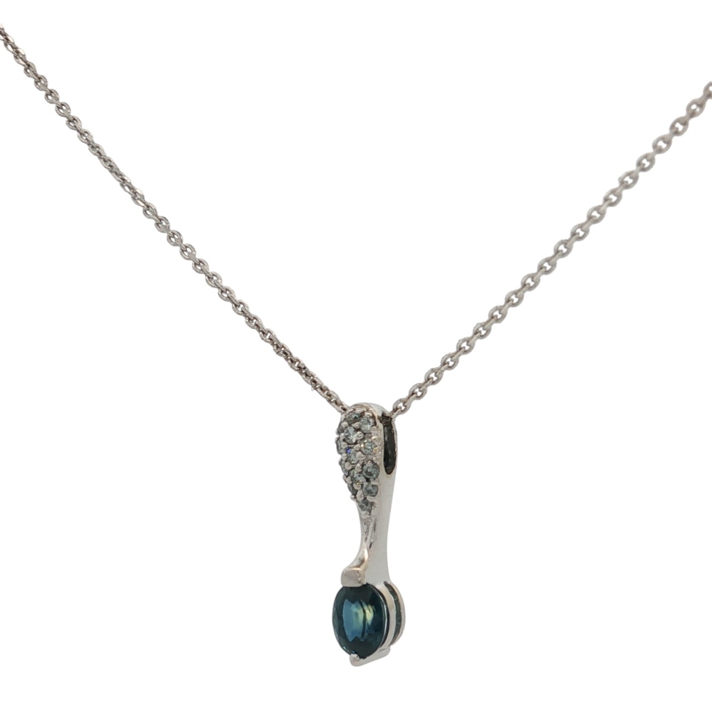 14k White Gold .80CTW Diamond, .38CTW Sapphire Necklace 2.8g