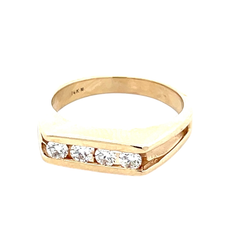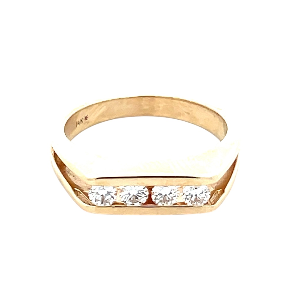 Unveil the beauty of simplicity with our 14K Yellow Gold Diamond Ring. Adorned with four VS1/VS2 colorless diamonds, their combined weight of 0.32ct flawlessly complements the ring's structure. Exemplify elegance with a touch of luxury on your finger; ring size 7.5.