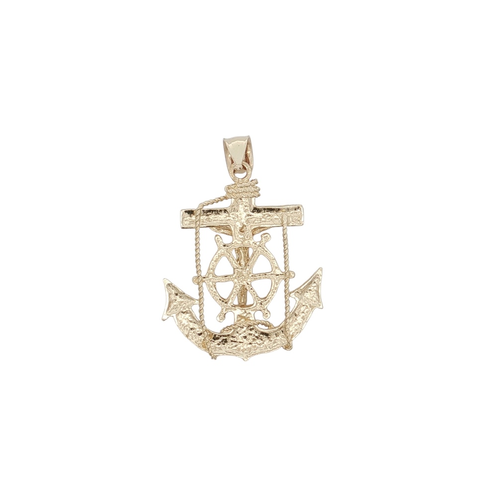 14K Yellow Gold 1-3/4" Mariner's Cross Pendant 6.0g