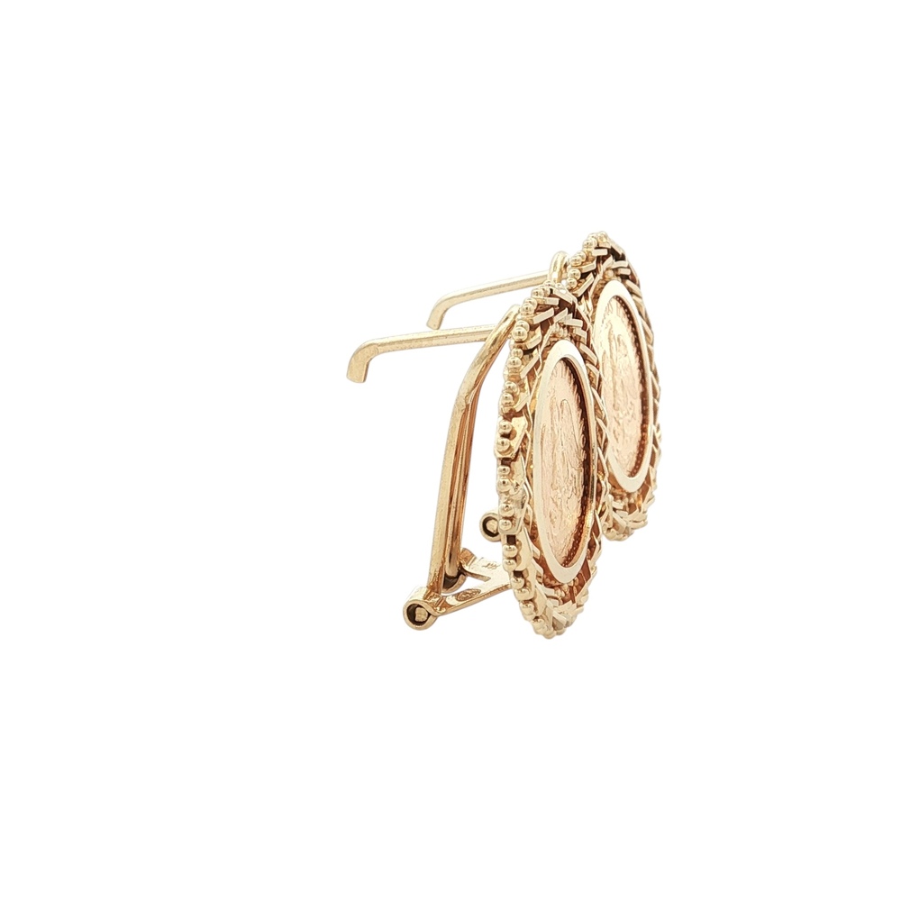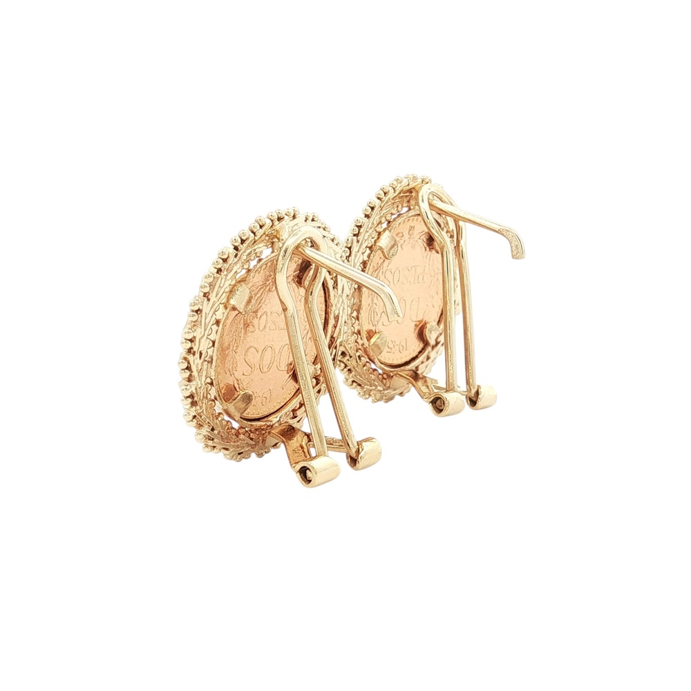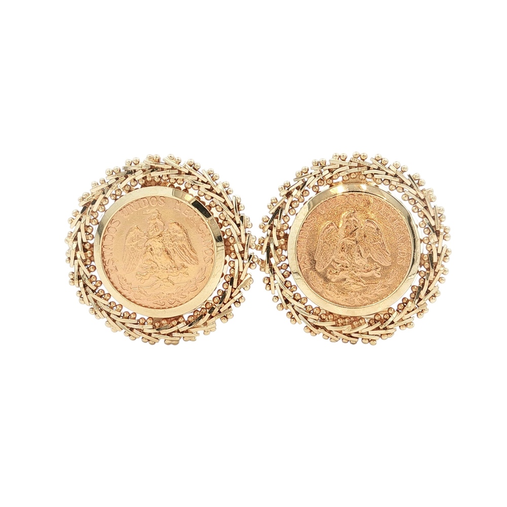 14K Yellow Gold 1945 Dos Pesos Gold Coin Earrings 8.8g