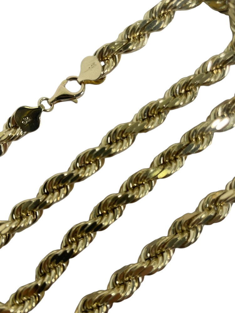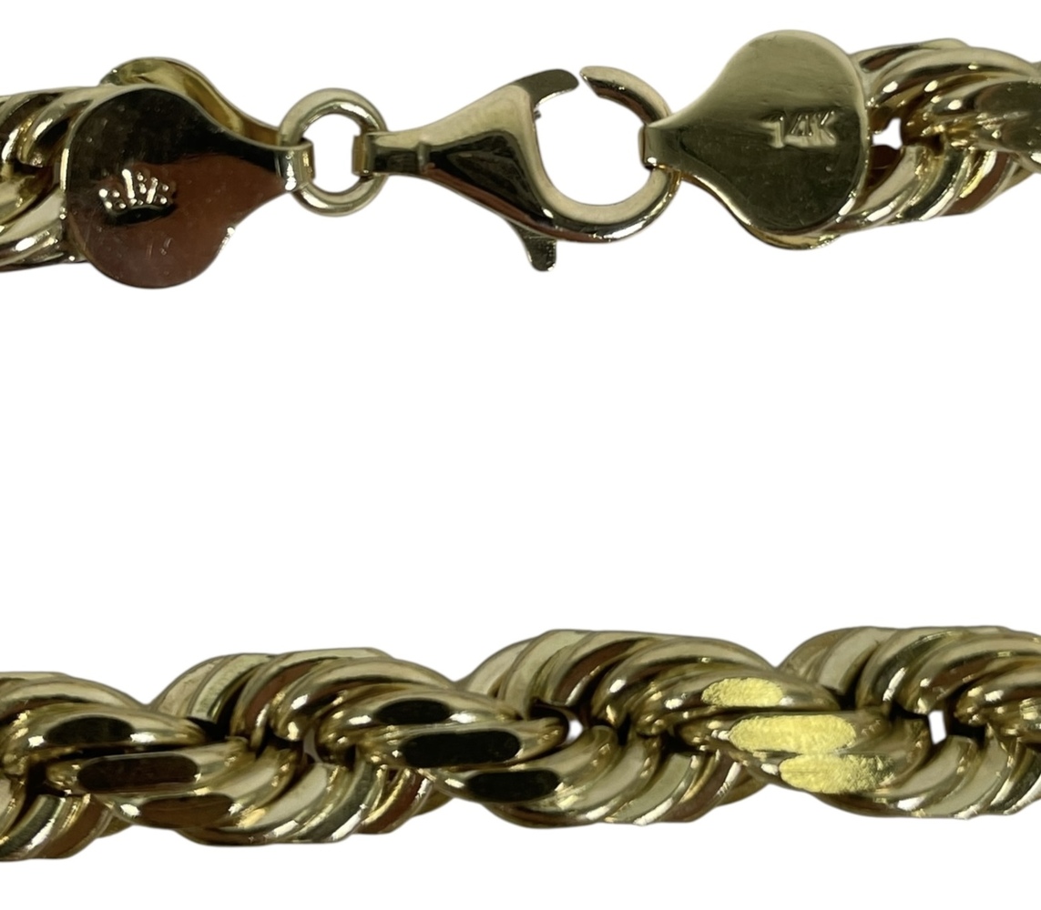 14K Yellow Gold 22 in. 8.0mm Solid Diamond Cut Rope Chain 117.3g