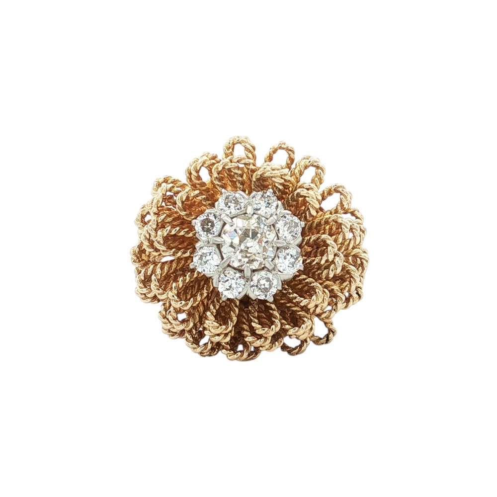 14K Yellow Gold 3/4CTW Diamond Retro Cocktail Ring SZ:7