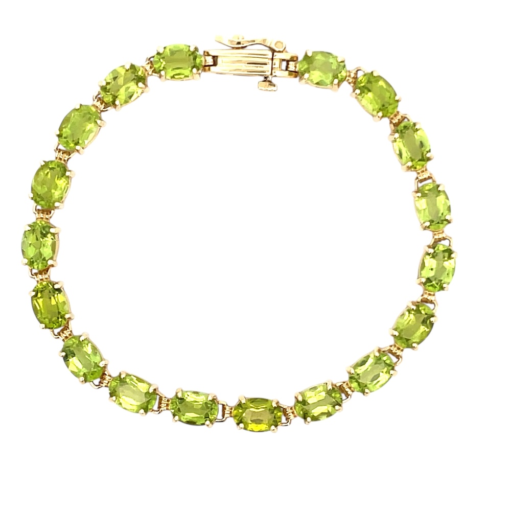 14K Yellow Gold 7 in. Peridot Gemstone Tennis Bracelet 12.8g