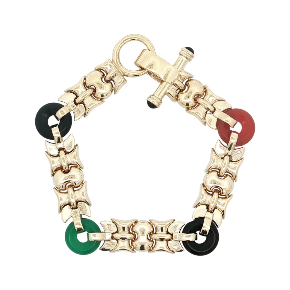 14K Yellow Gold 7-1/4" Multi-color Disc Bracelet 26.6g