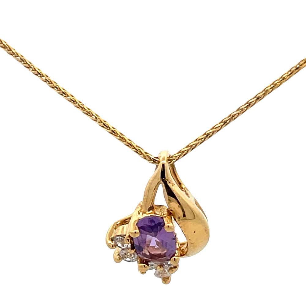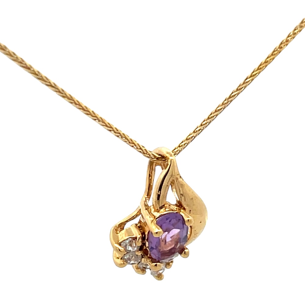 14K Yellow Gold Diamond & Amethyst Gemstone 18 in. Necklace