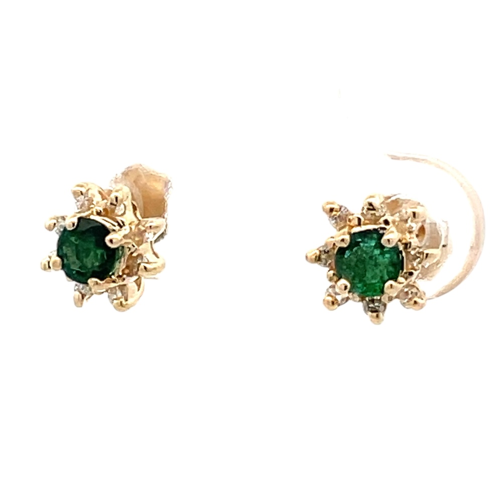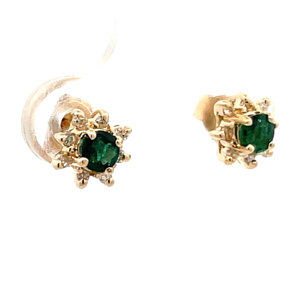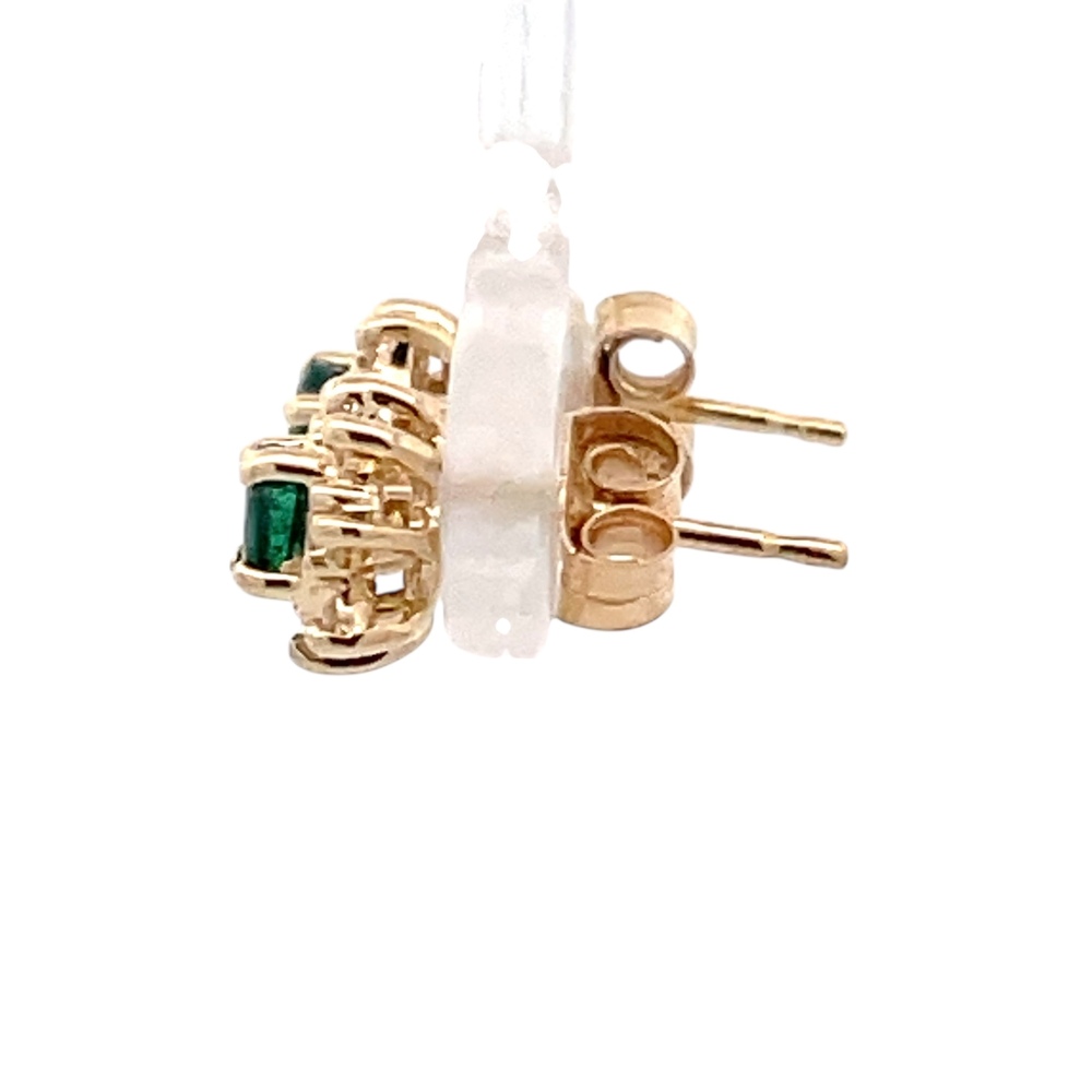 14K Yellow Gold Emerald & Diamond Stud Earrings