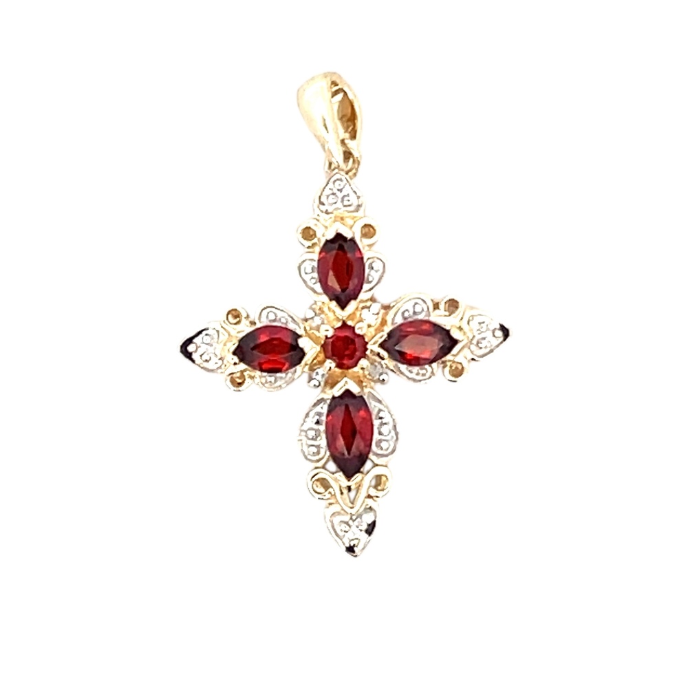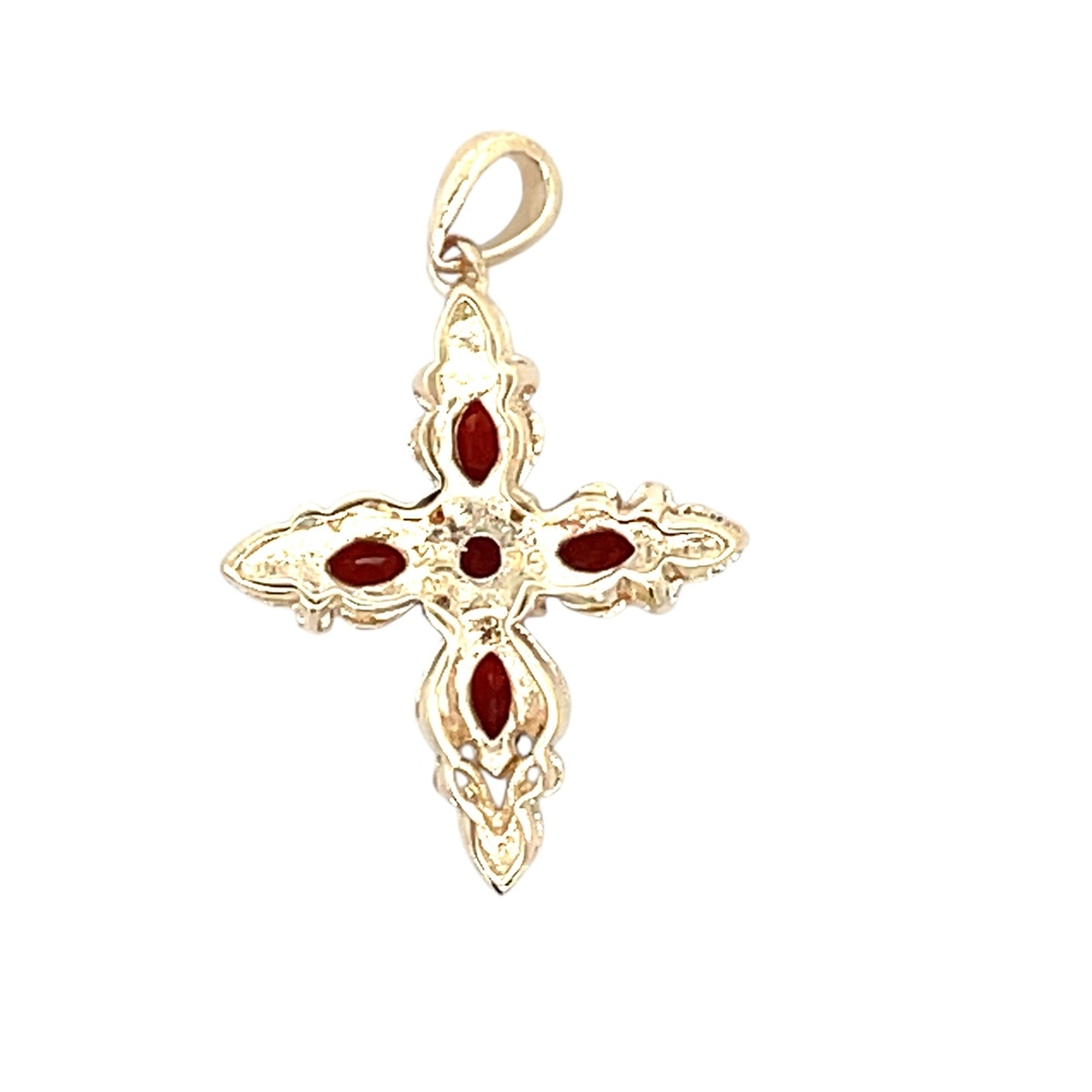 14K Yellow Gold Garnet Cross Pendant 3.3g