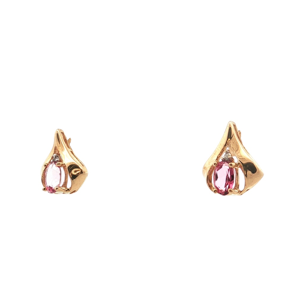 14k Yellow Gold Pink Sapph Earrings Gemstones 2.50gm