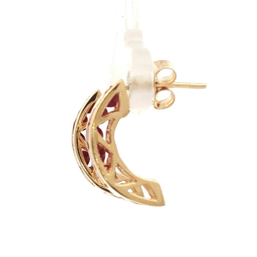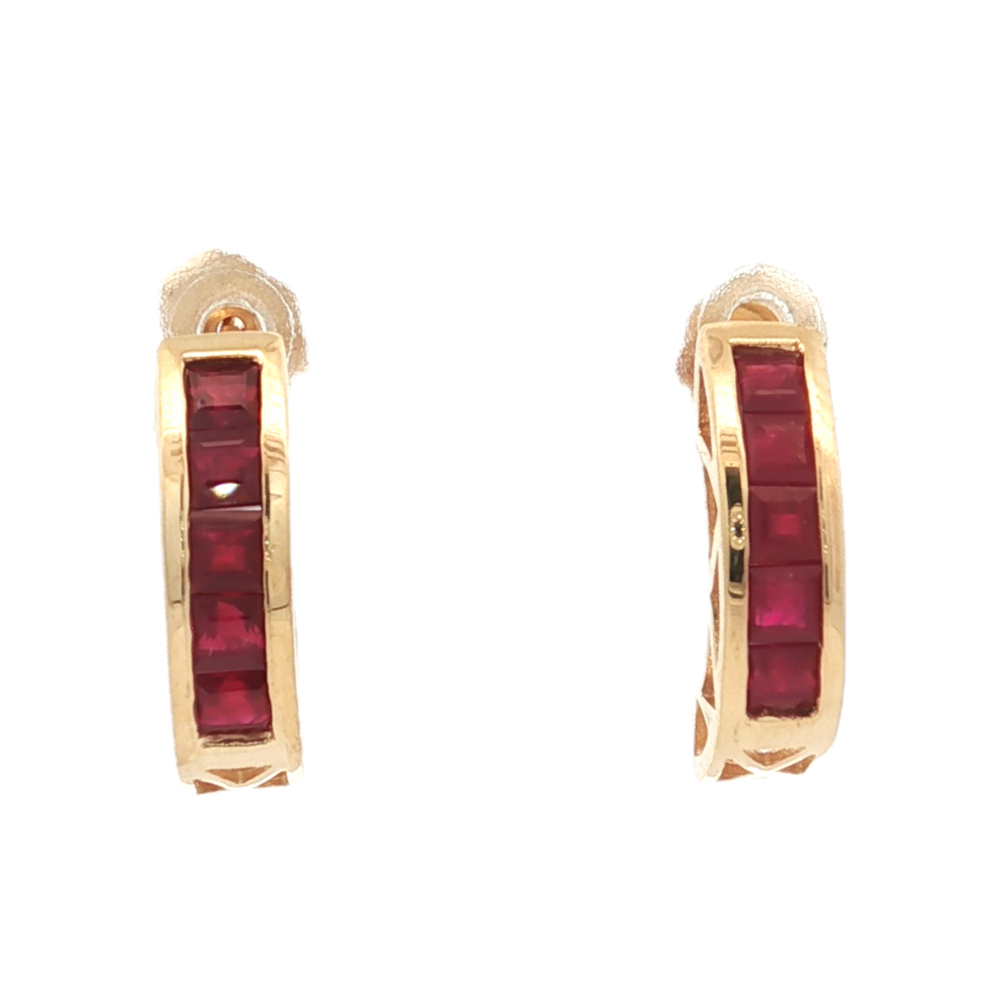 14K Yellow Gold Princess-Cut Syn. Ruby Stud Earrings