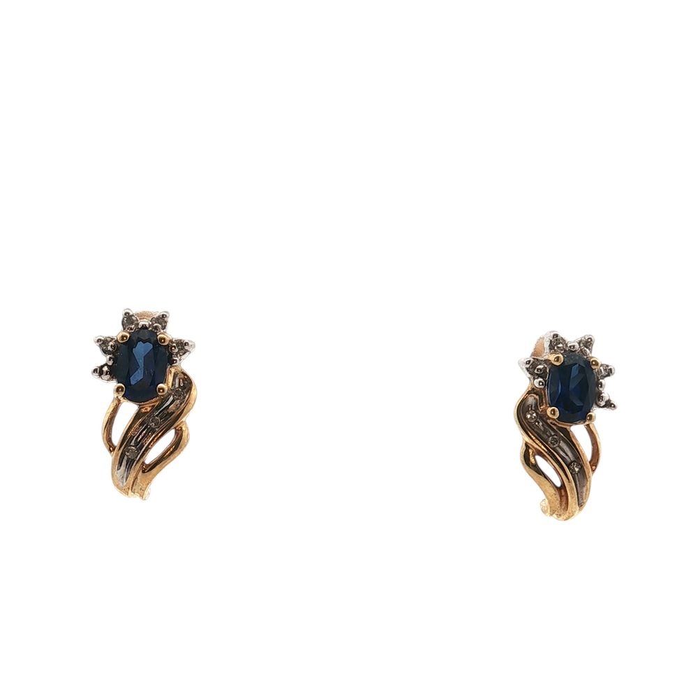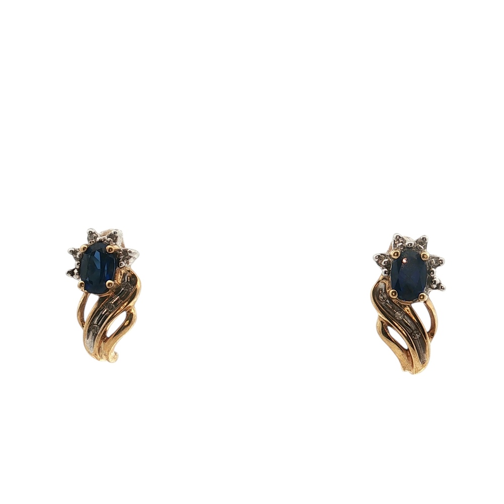14k Yellow Gold Sapph & Diamond Earrings 3.1g