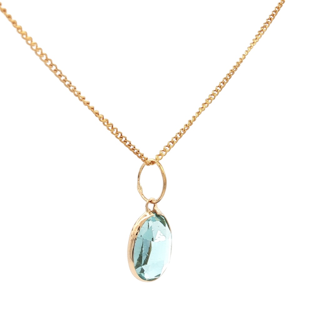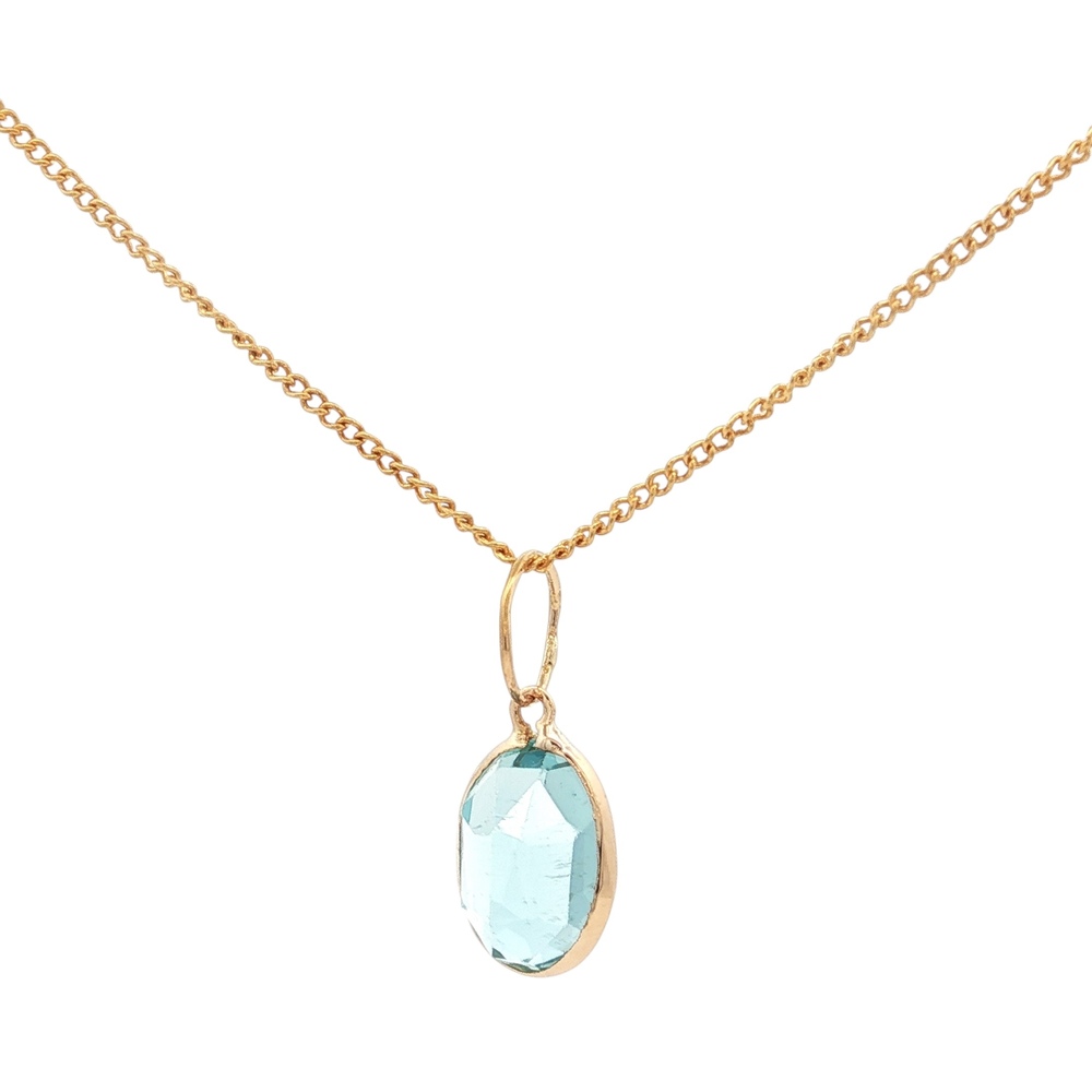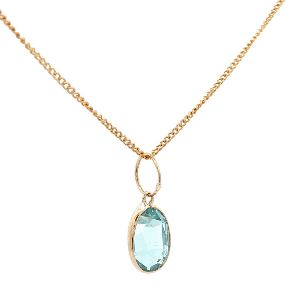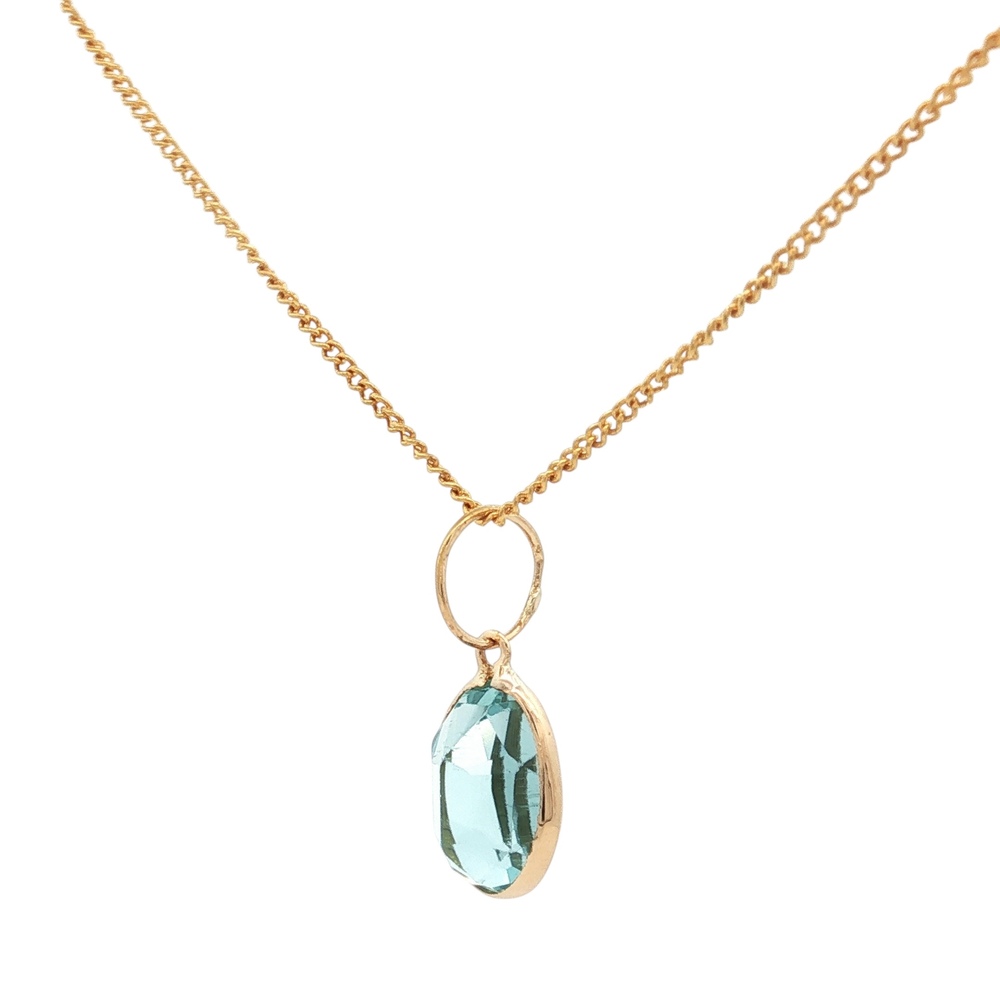 18K Yellow Gold 16 in. Blue Topaz Gemstone Necklace 2.9g