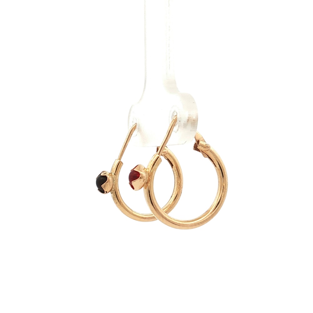 18K Yellow Gold Synthetic Cabochon Ruby Huggie Earrings