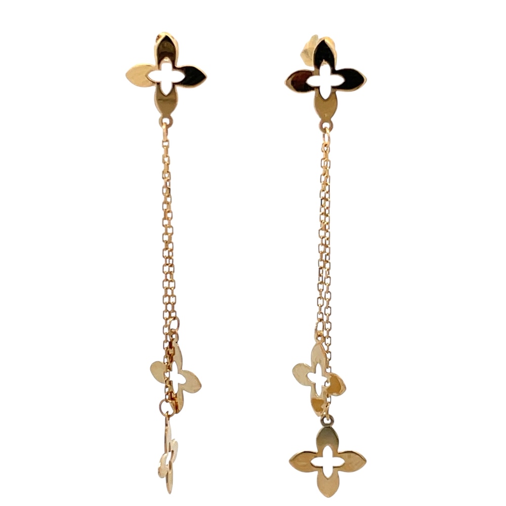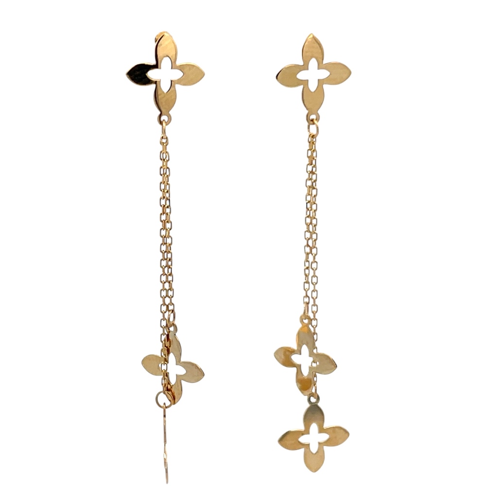 18K Yellow Gold Quatrafoil Dangling Earrings