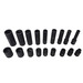 - 9/16" short and deep, 1/2" short and deep, 7/16" short and deep, 3/8" short and deep, 11/32" short and deep, 5/16 short and deep, 9/32" short and deep, 1/4 short and deep, and 7/32 short and deep sockets included