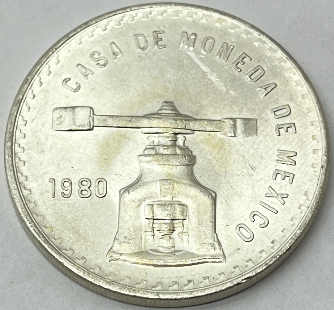 1980 Casa De Moneda Mexico .925 Uno Onza Peso