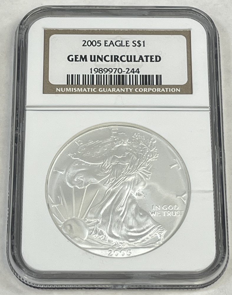 2005 American Silver Eagle NGC Gem Uncirculated .999 Fine Silver