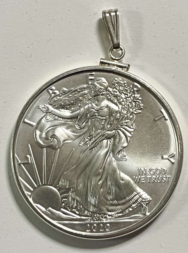 2020 American Silver Eagle 1oz .999 Fine Silver Coin on a Pendant