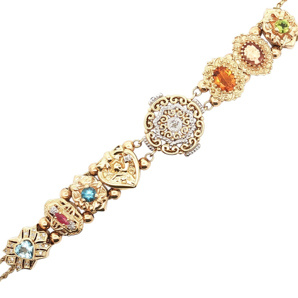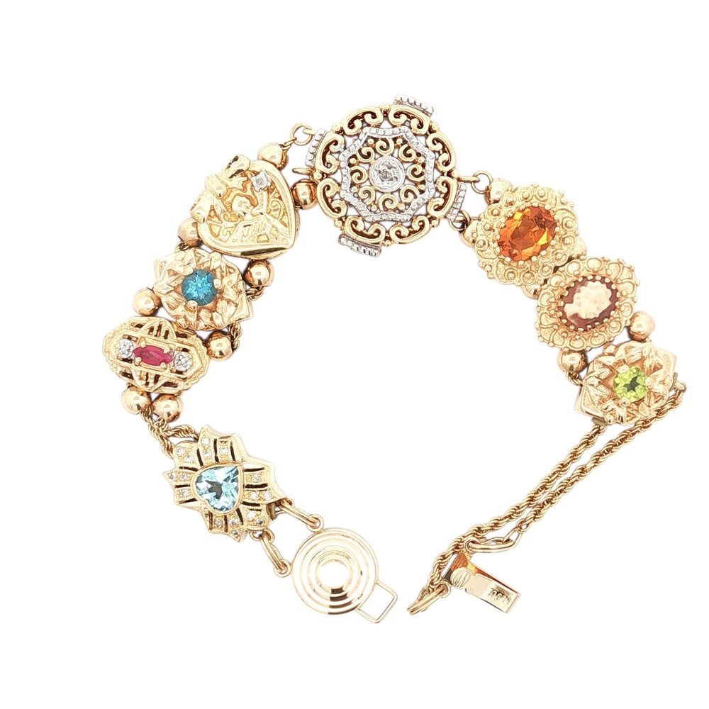 Richard Klein 14K Yellow Gold Peek-a-Boo Geneve Watch Charm Bracelet 30.9g
