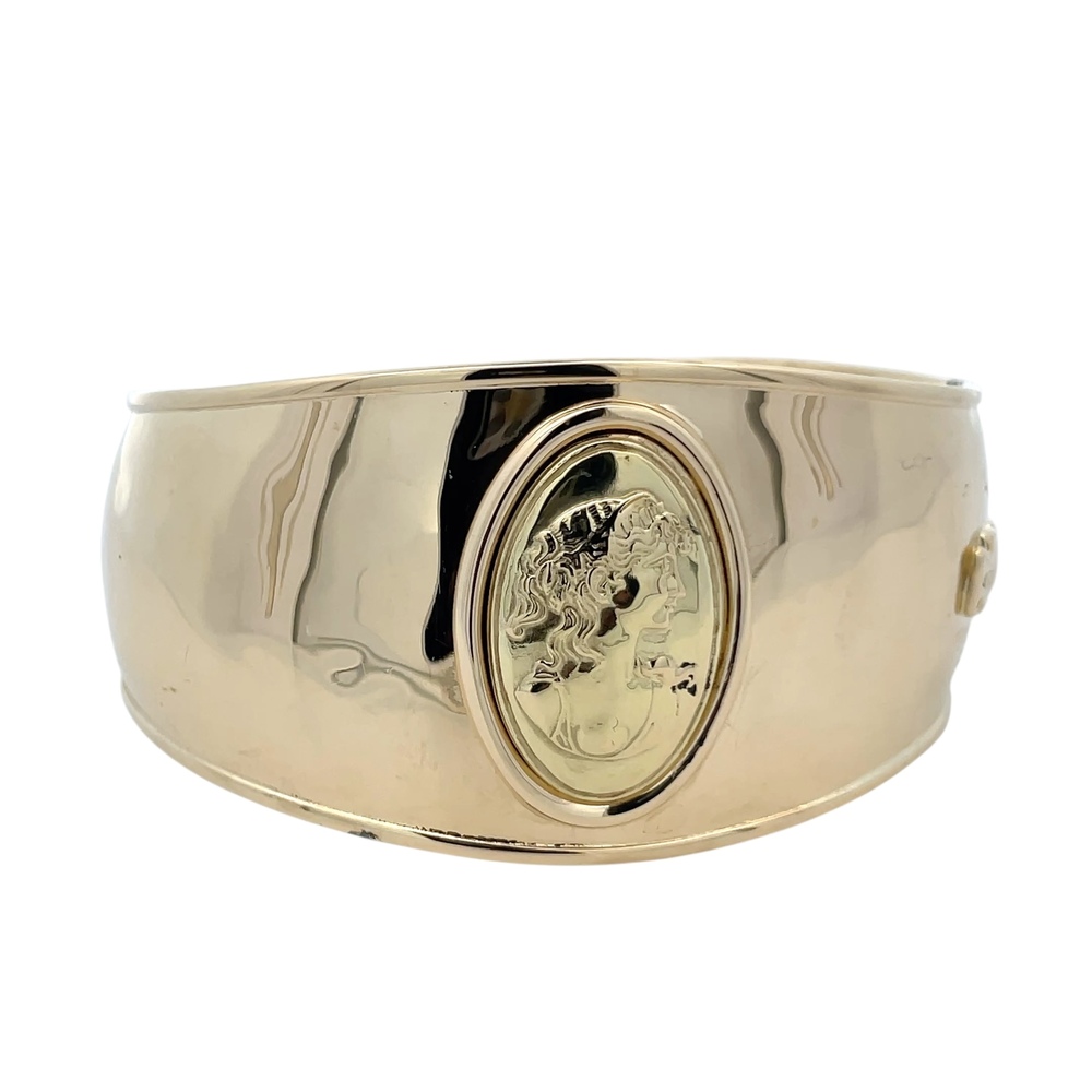 Anfora Italy 18K Yellow Gold Cameo 7 in. 32mm Tapered Cuff Bracelet