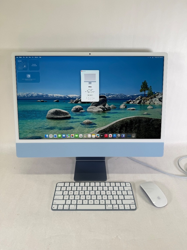 The 2021 Apple iMac, in striking Blue, features a 24-inch display for stunning visuals. It's equipped with an M1 chip, 256GB SSD for quick storage, and 8GB RAM for smooth multitasking. Powered by macOS Tahoe 26.2, it offers an enhanced user experience and improved performance.