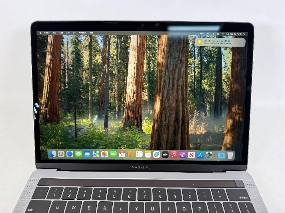 The Apple MacBook Pro 13 2019 boasts advanced features with a 2.4GHz Intel Core i5-8279U processor for robust processing speed. An integral 8GB RAM helps run resource-intensive applications smoothly while a 256GB SSD provides ample storage space and improved data retrieval. This sleek, space gray laptop comes with a Touch Bar interface and four Thunderbolt 3 ports that support power delivery, DisplayPort, and high-speed data transfer. It runs on the macOS Sequoia 15.7 operating system, offering a stable and user-friendly computing environment.