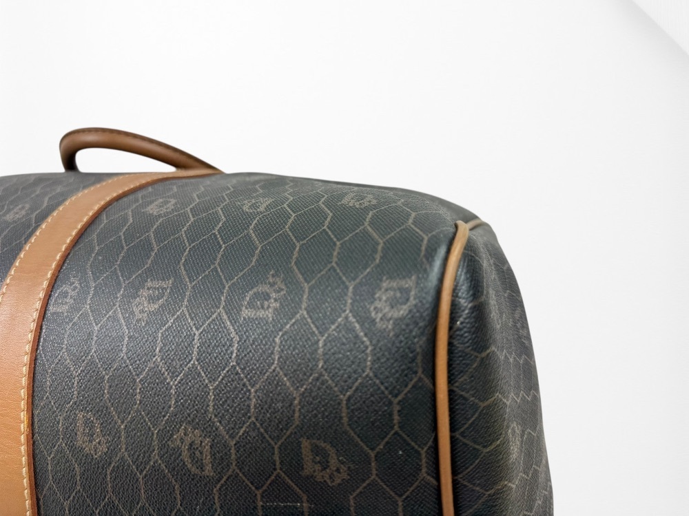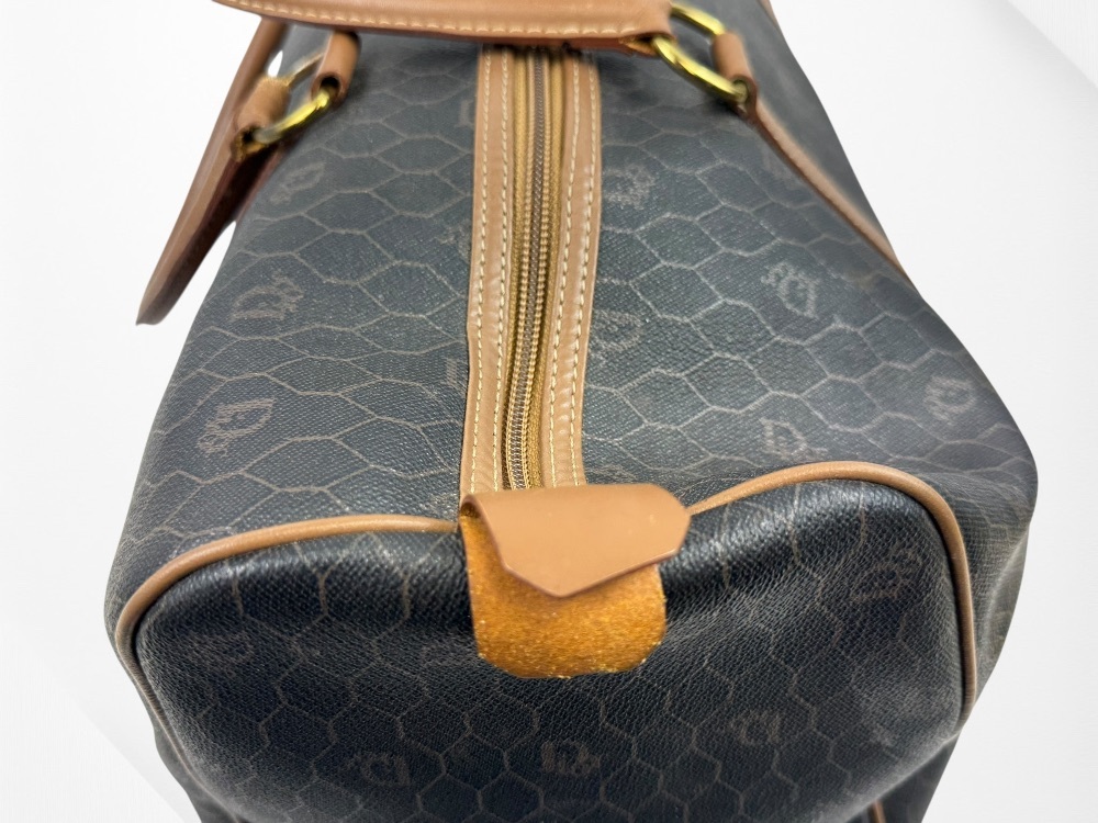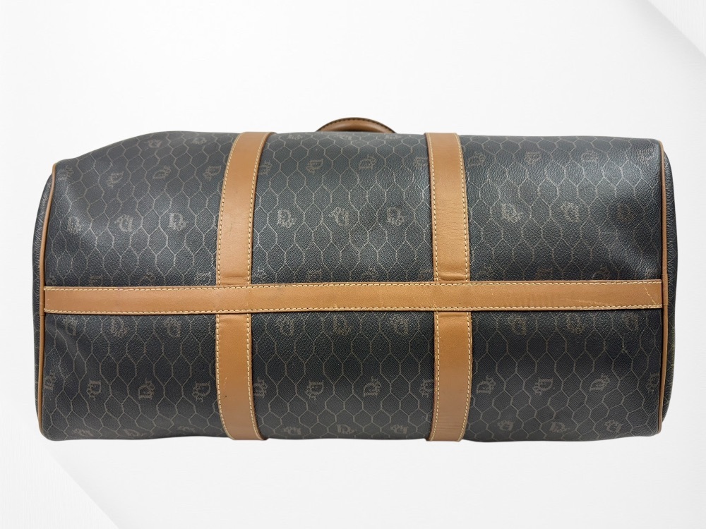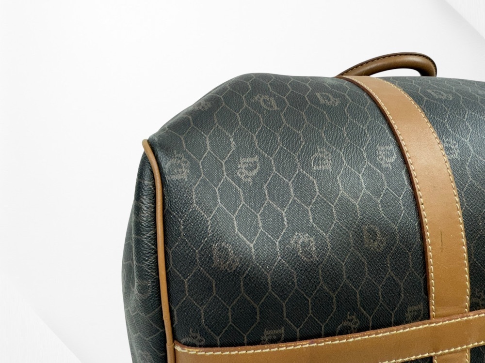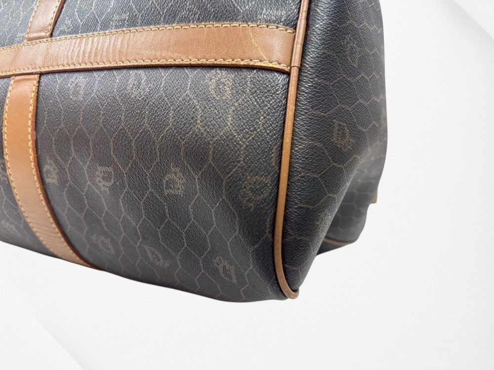 Authentic Christian Dior Honeycomb Pattern PVC Brown 45 Boston Bag