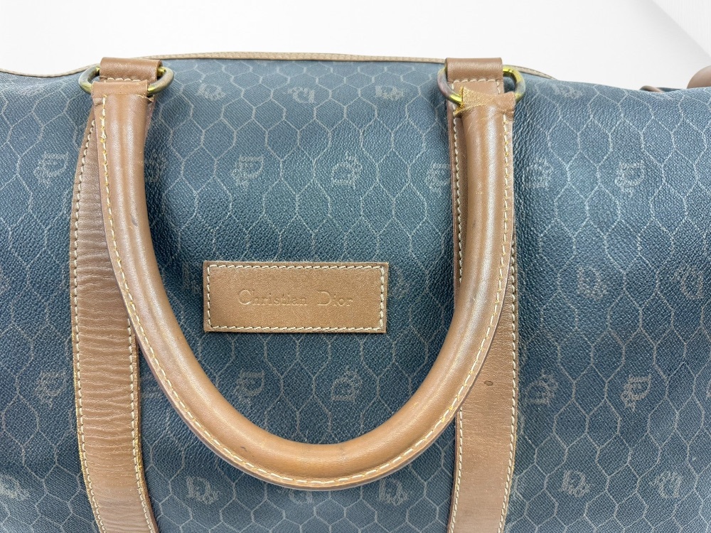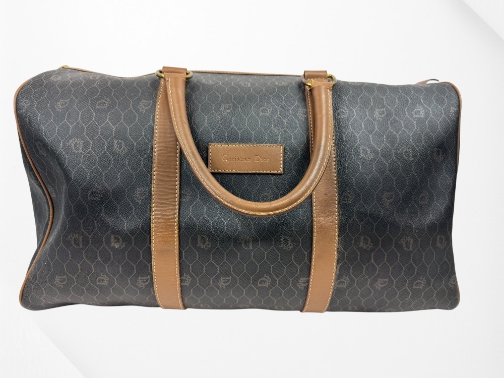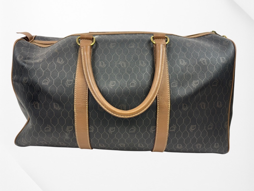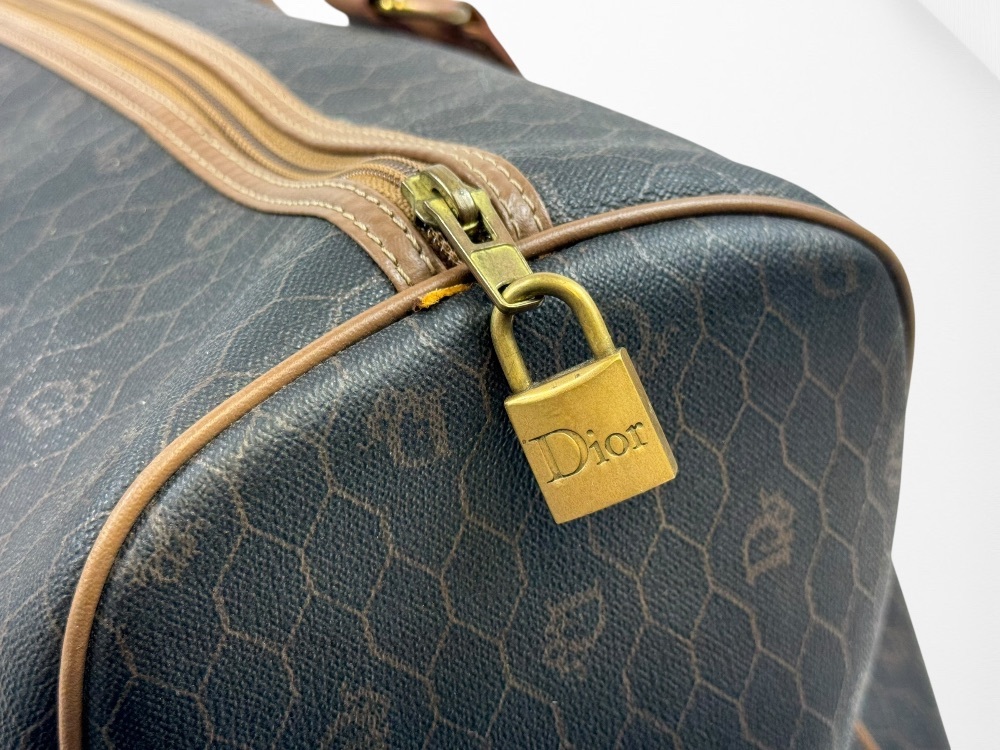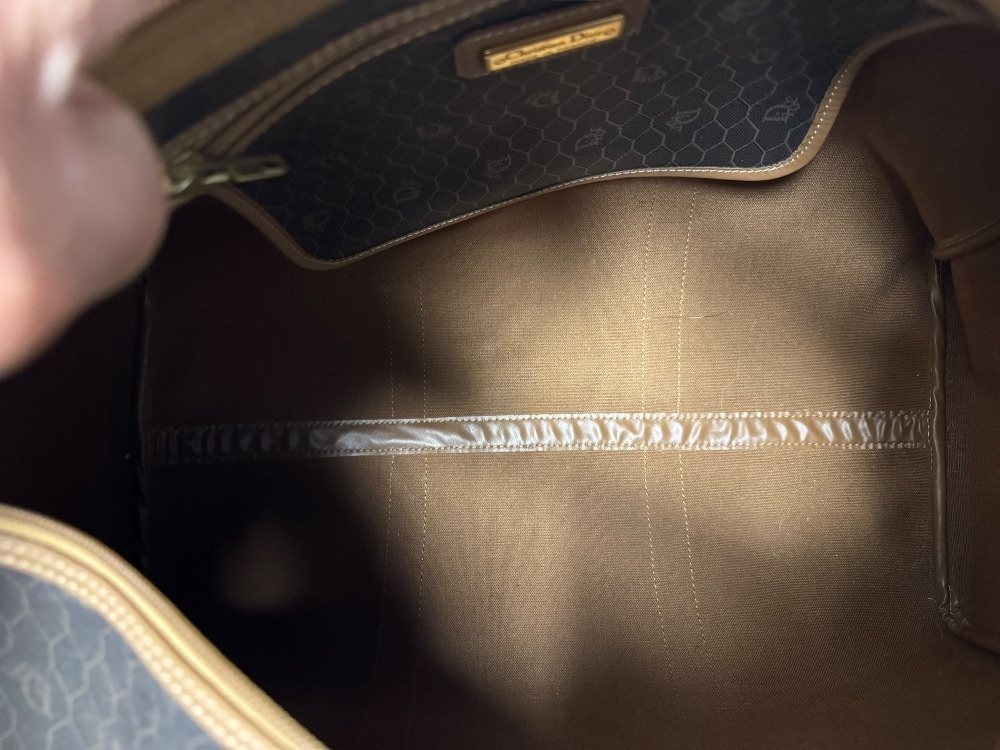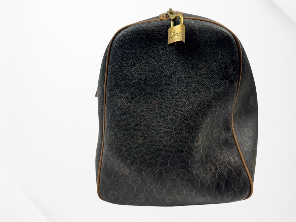 Authentic Christian Dior Honeycomb Pattern PVC Brown 45 Boston Bag