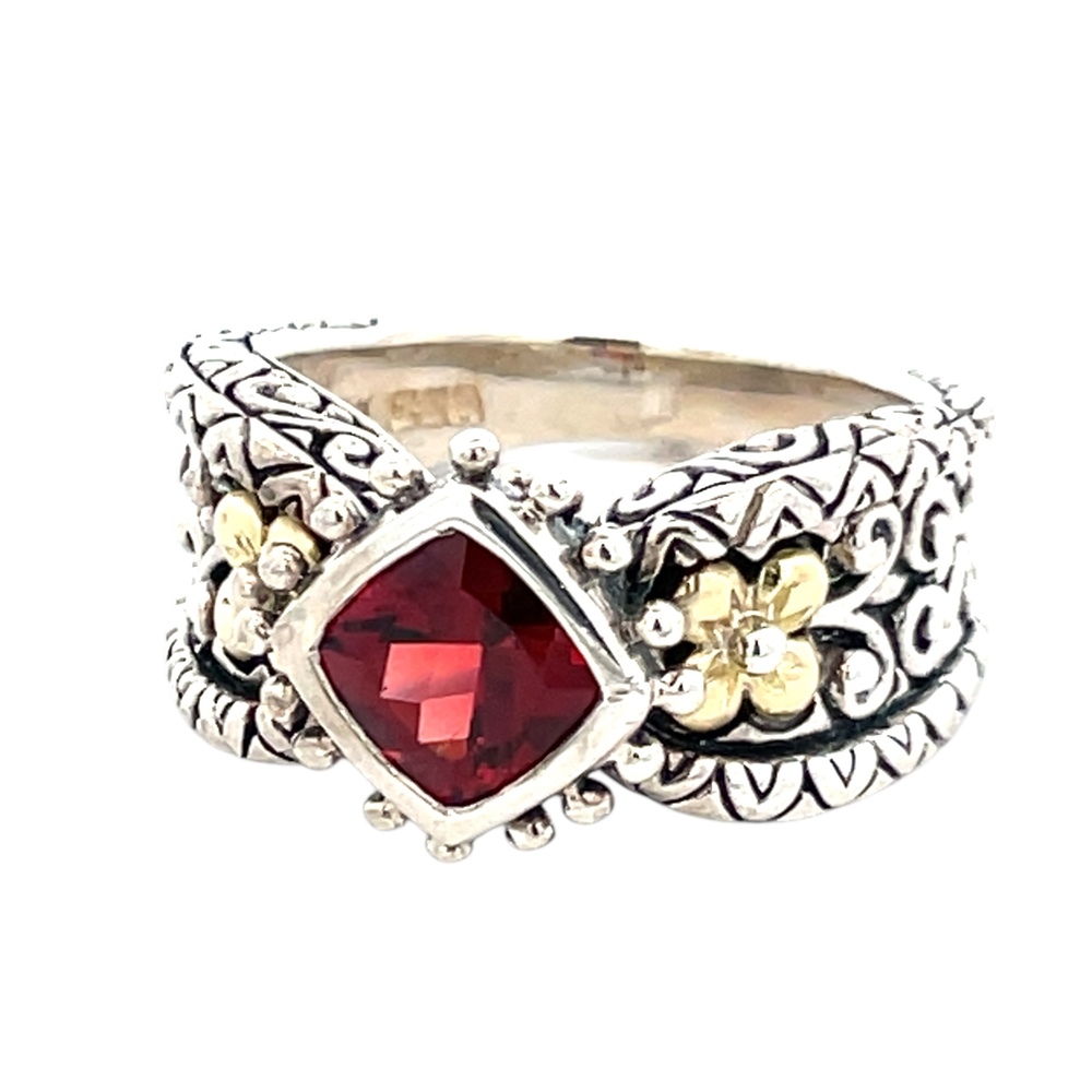 Barbara Bixby 18K/925 Red Gemstone Ring SZ:8