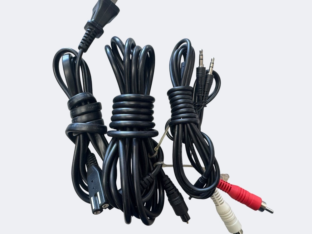 - Power, RCA, Optical, and mini-jack cords