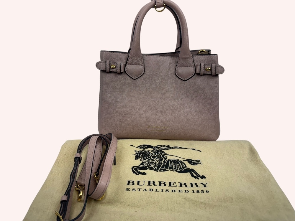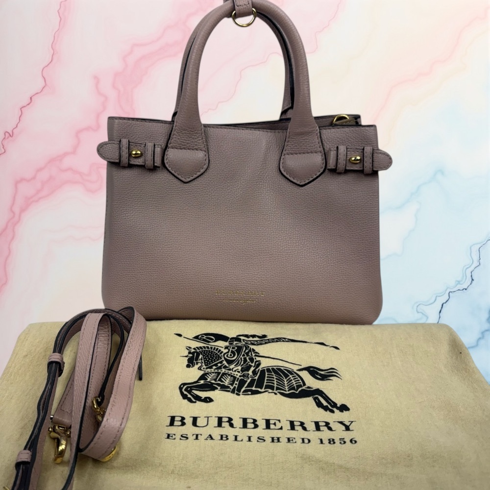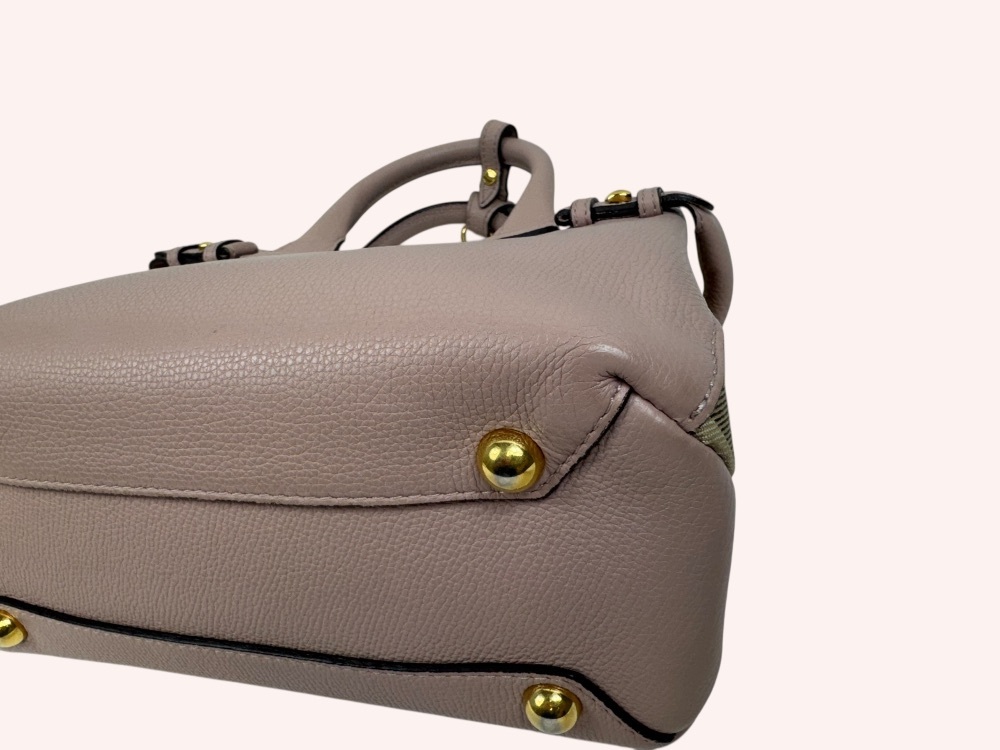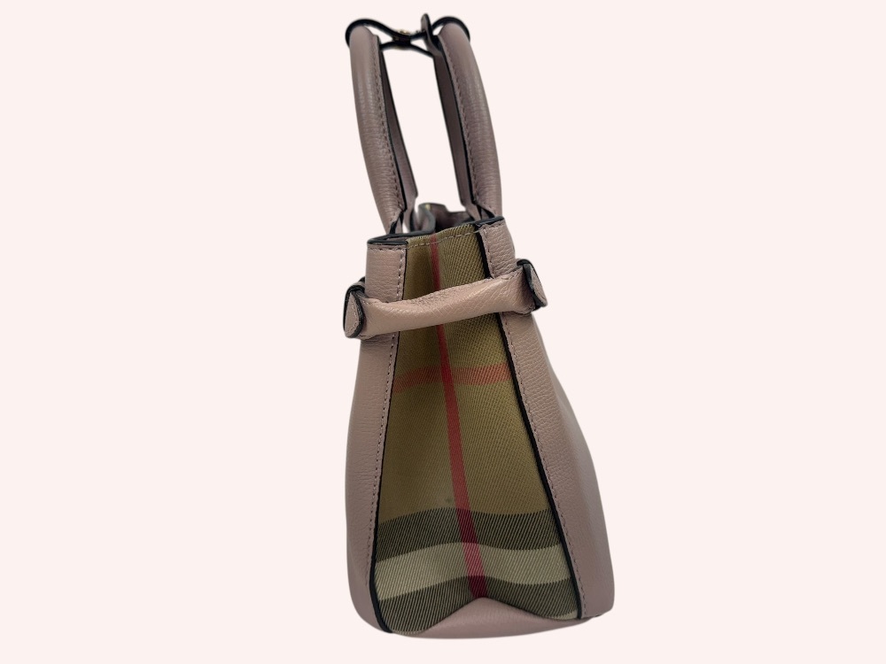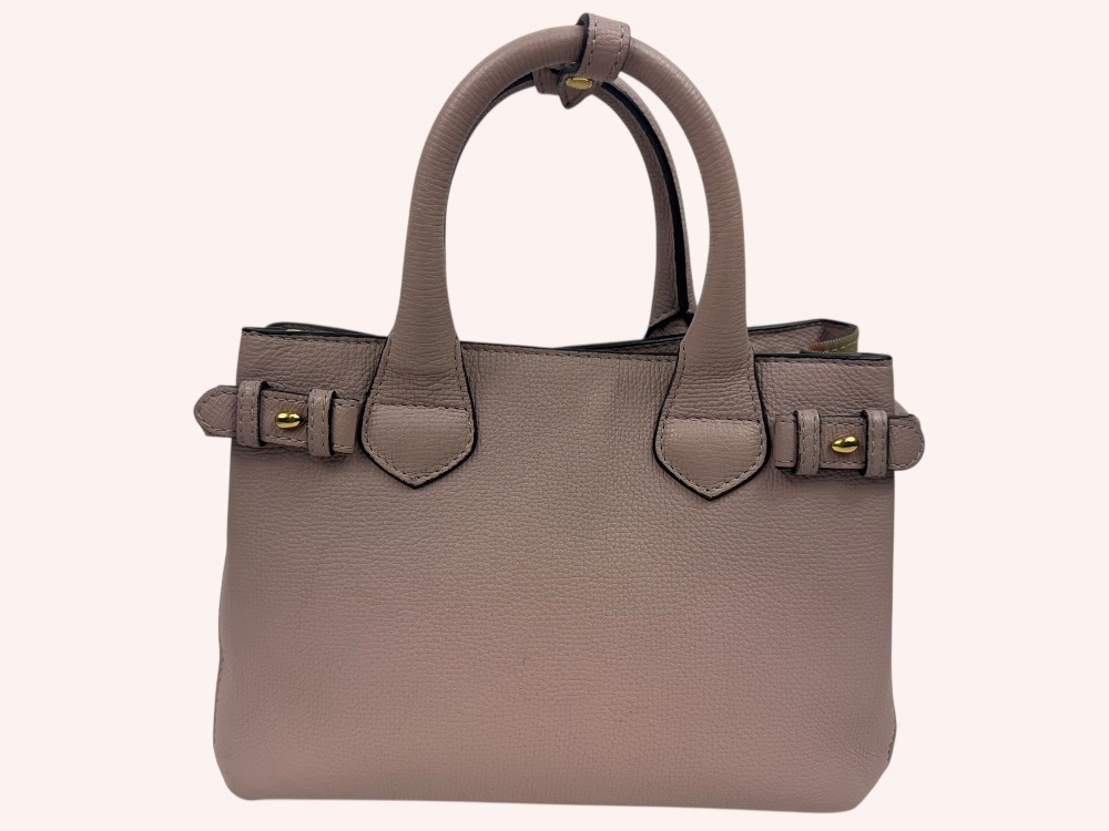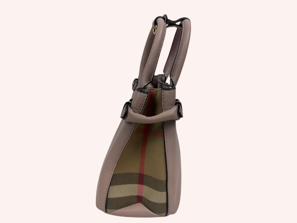 Burberry Banner House Check Leather Satchel Shoulder Bag Handbag Dusty Rose