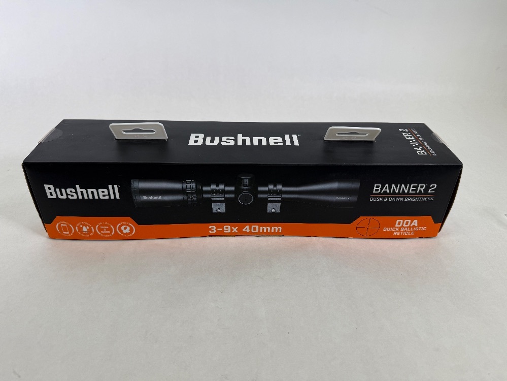 The Bushnell Banner 2 3-9x40mm is an advanced hunting rifle scope featuring multi-coated optics for superior light transmission, dusk-and-dawn brightness settings, and a durable one-piece tube design. With adjustable 3-9x magnification and a 40mm objective lens, it offers exceptional clarity and precise shot placement even in low-light environments.