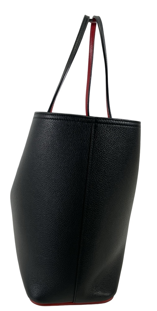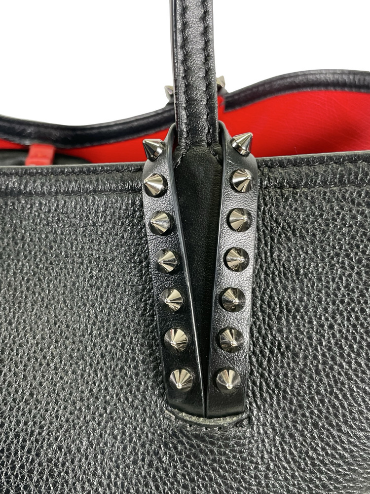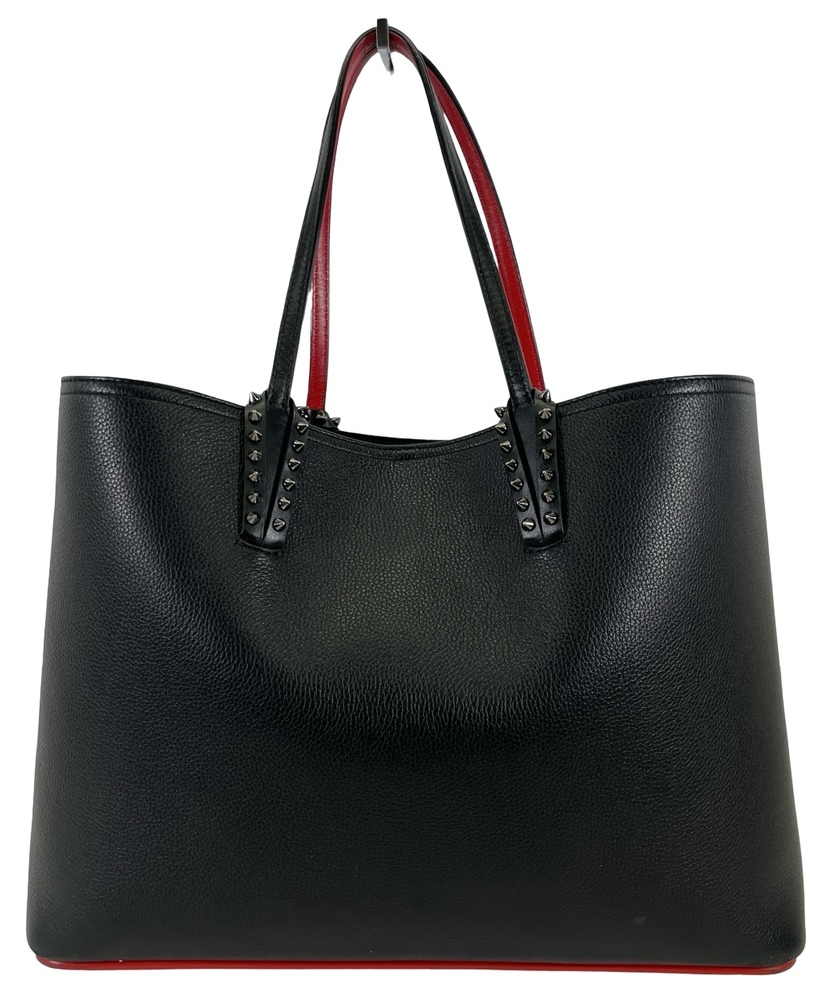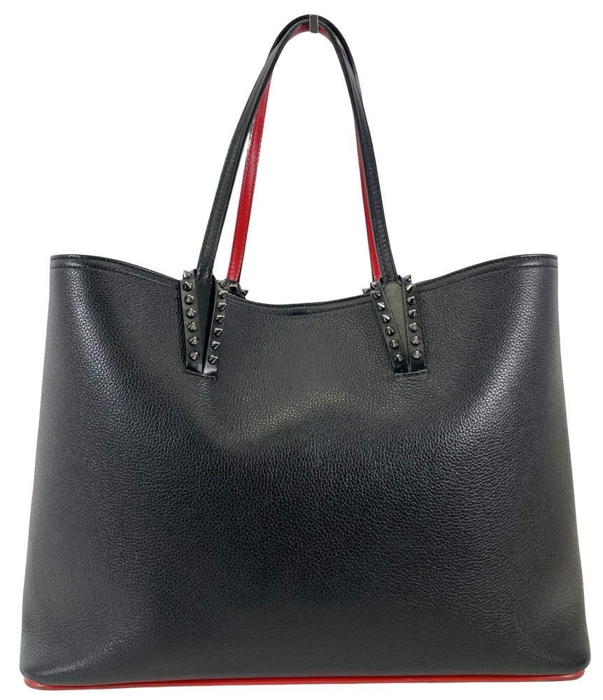 -The Cabata soft tote in size large showcases Maison Christian Louboutin's savoir faire. This model features the hallmarks of the iconic Cabata tote: signature metallic spikes encircling the handles, a bold sneaker sole and Loubi red lining.