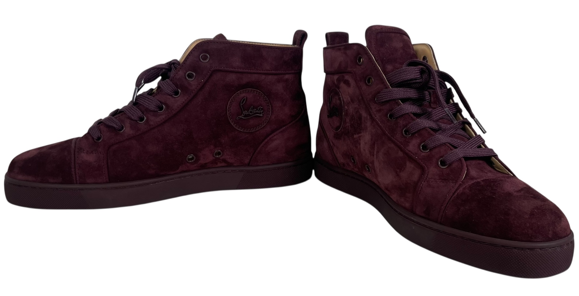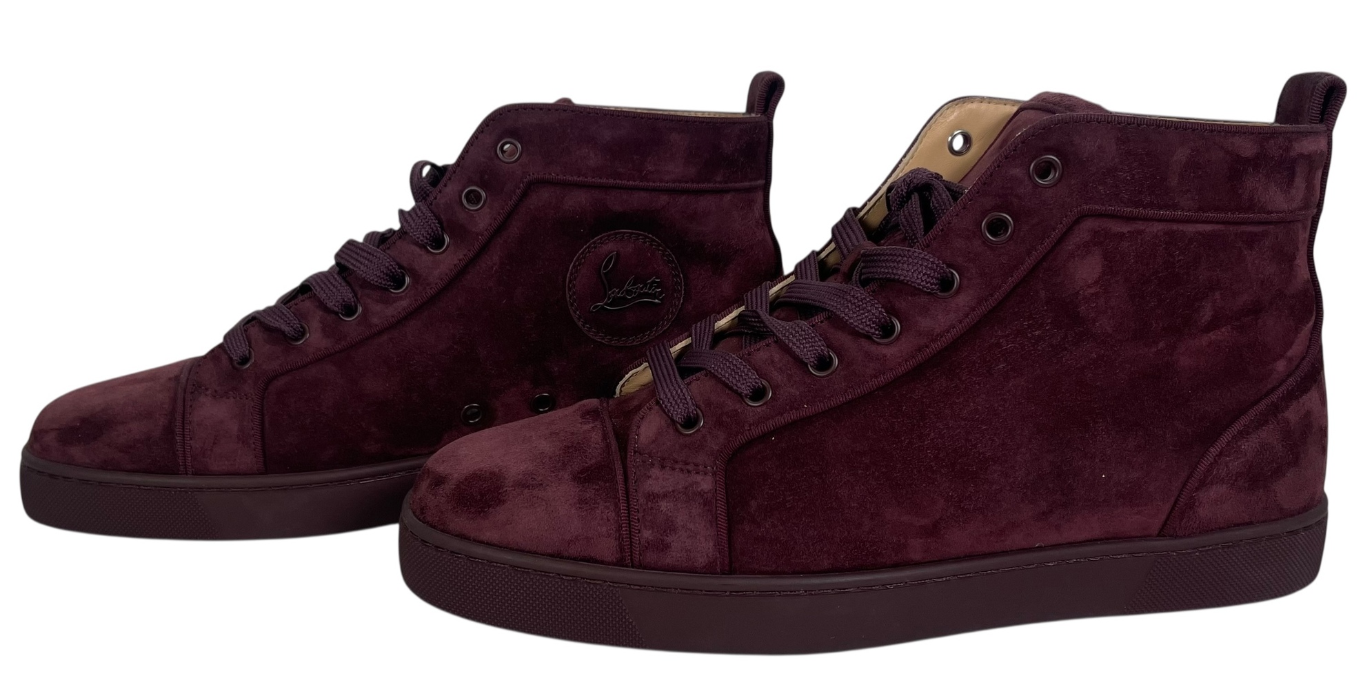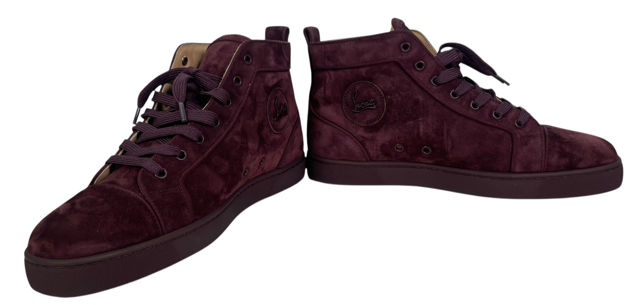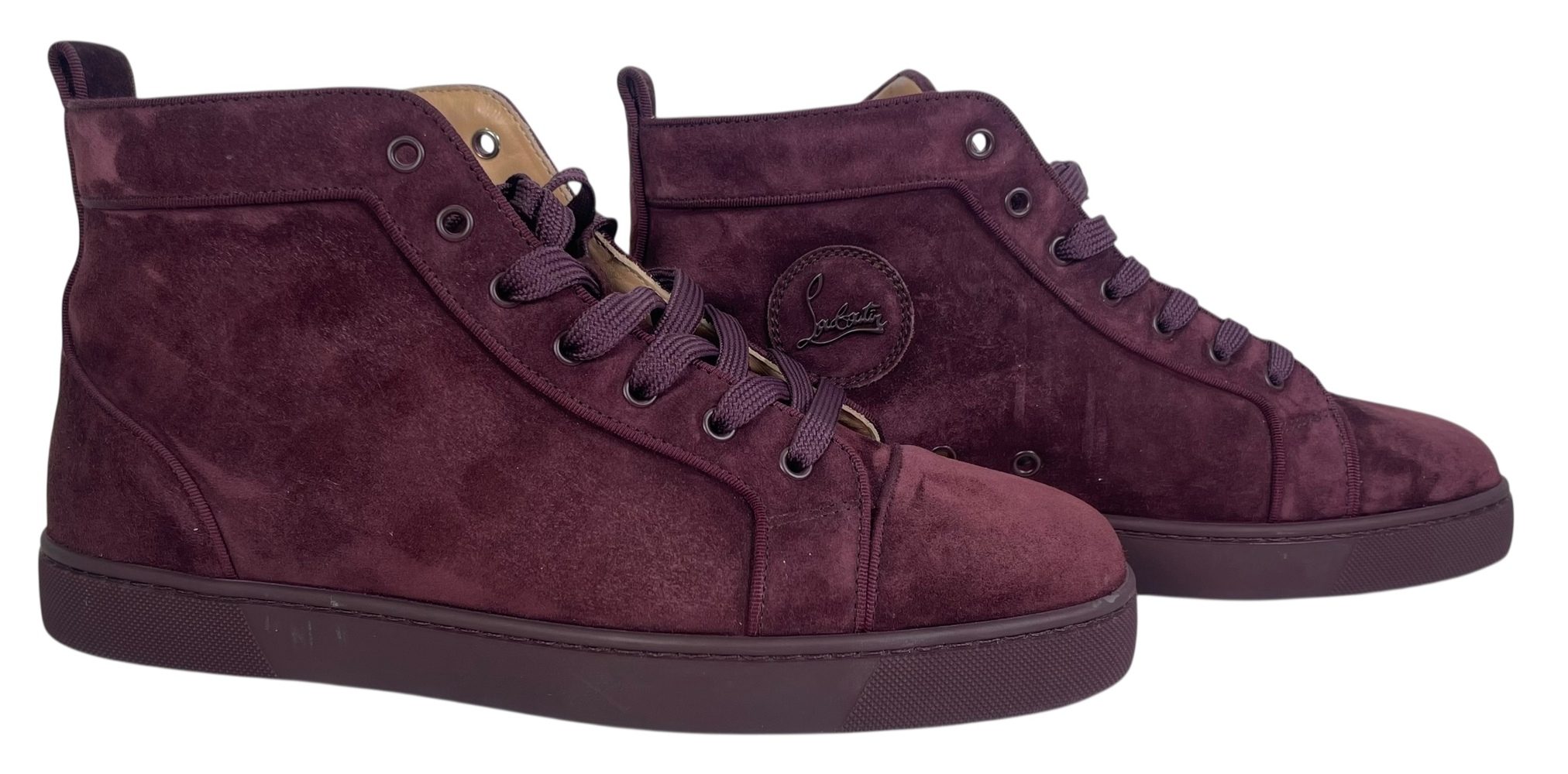 -An iconic model from the Maison Christian Louboutin, the Louis is inspired by the timeless 1980s basketball shoe. This season's iteration of the high-top sneaker is crafted from all-over Majesdtueuxveau velours suede, complimented with visible double stitching on the trainer construction. In Christian Louboutin's inimitable style, tonal laces and a creeper sole offer a sleek, minimalist aesthetic.