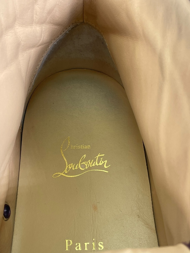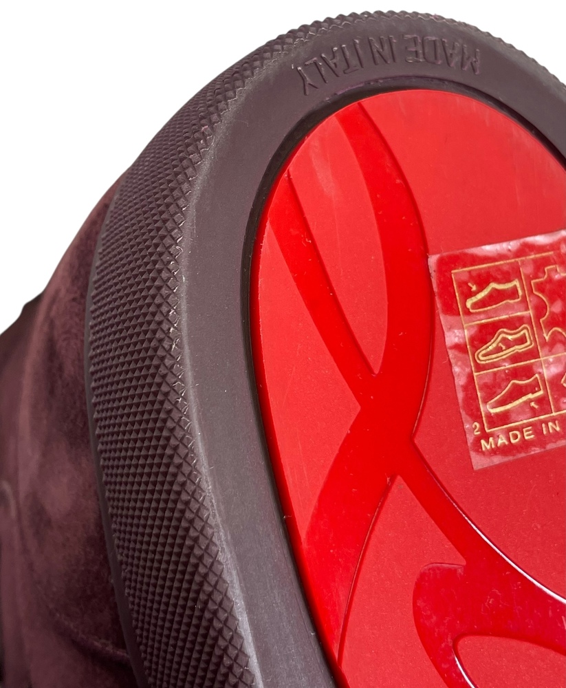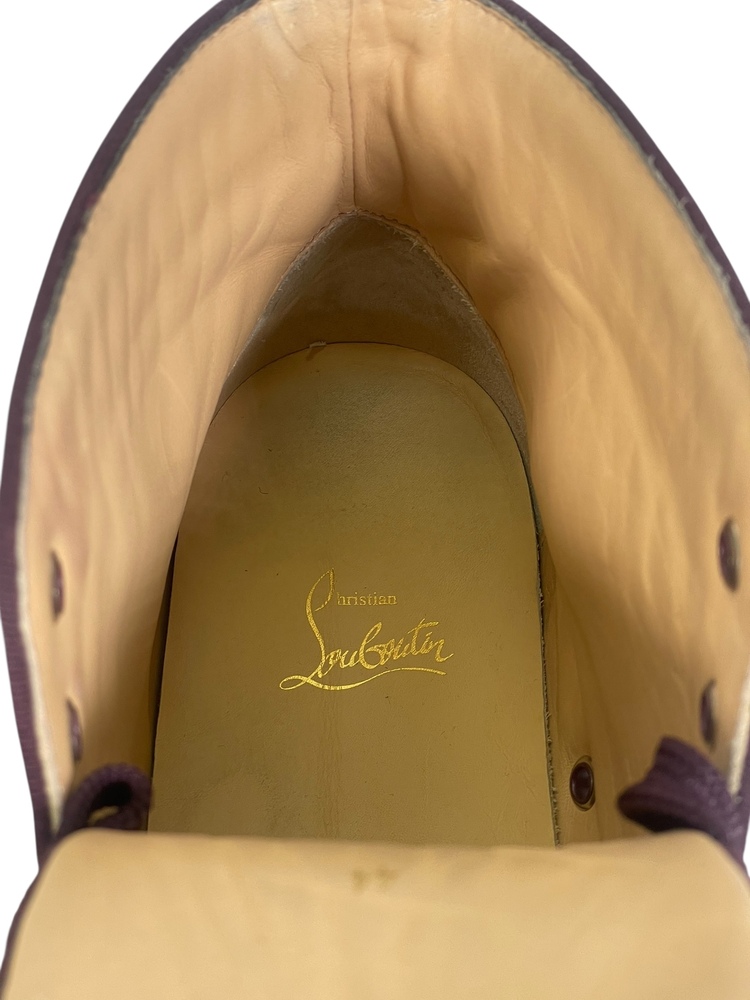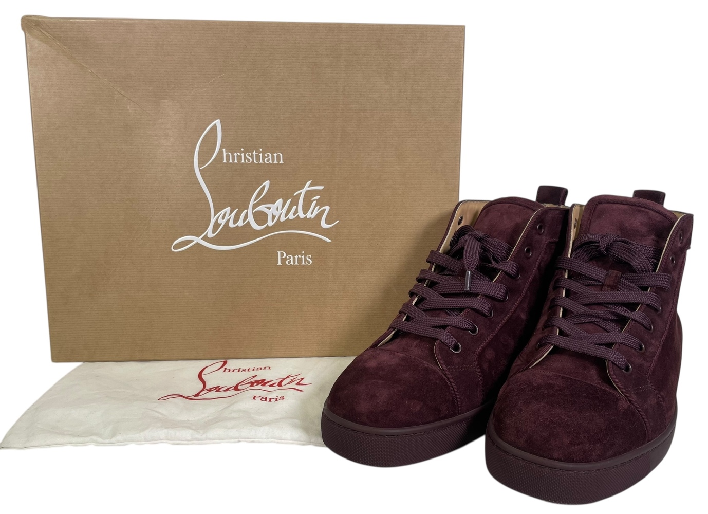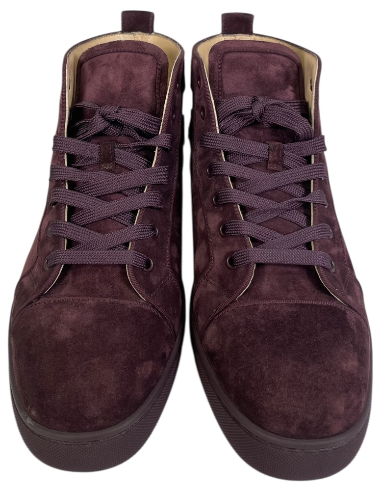 -An iconic model from the Maison Christian Louboutin, the Louis is inspired by the timeless 1980s basketball shoe. This season's iteration of the high-top sneaker is crafted from all-over Majesdtueuxveau velours suede, complimented with visible double stitching on the trainer construction. In Christian Louboutin's inimitable style, tonal laces and a creeper sole offer a sleek, minimalist aesthetic.