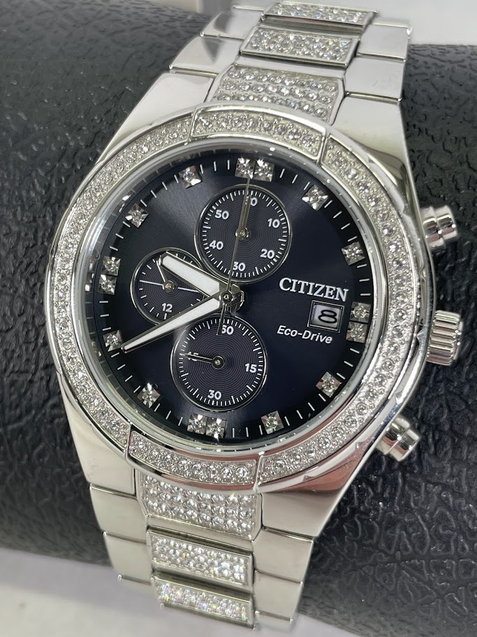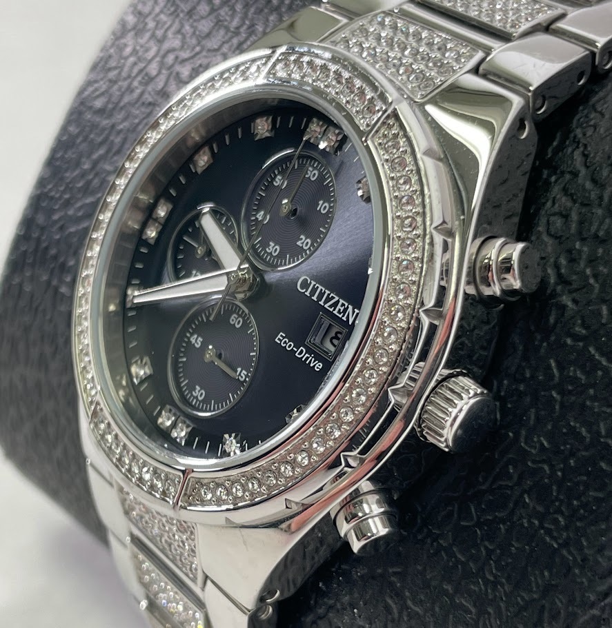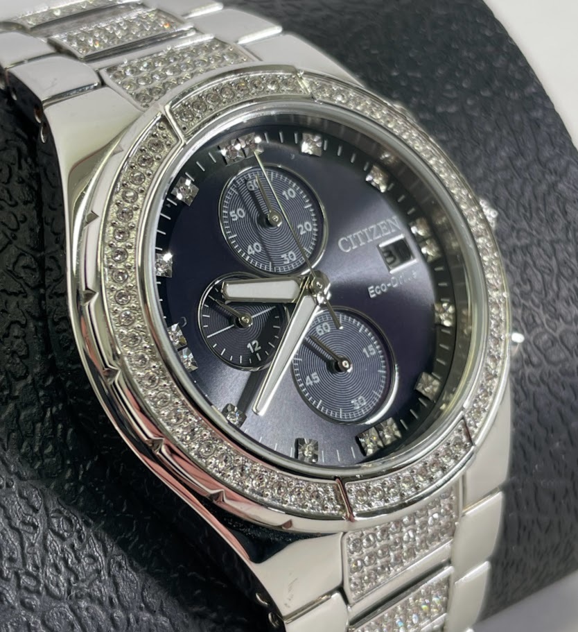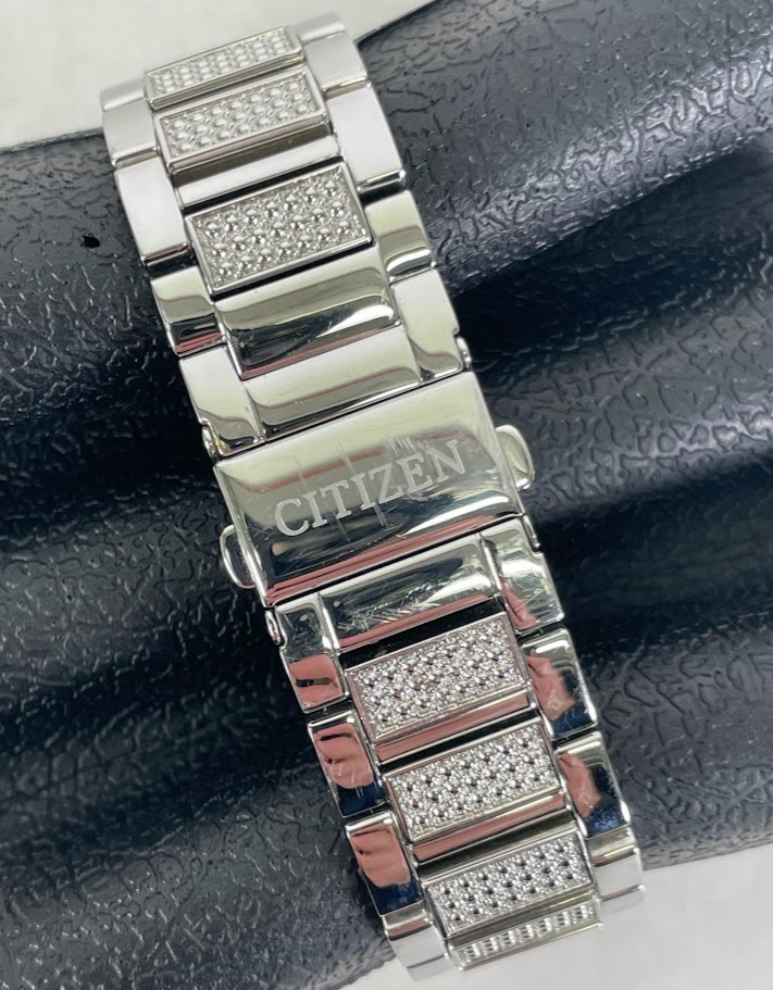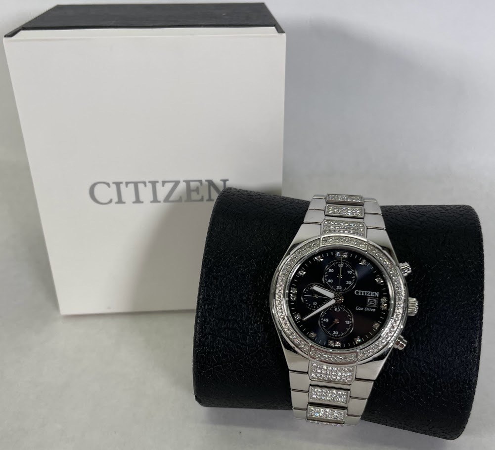 The Citizen watch for sale is preowned but in excellent condition showing little to no signs of wear. It has been fully tested and is in perfect working order. Included is the original box and two extra links.